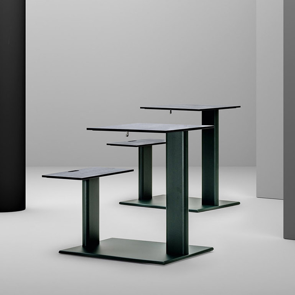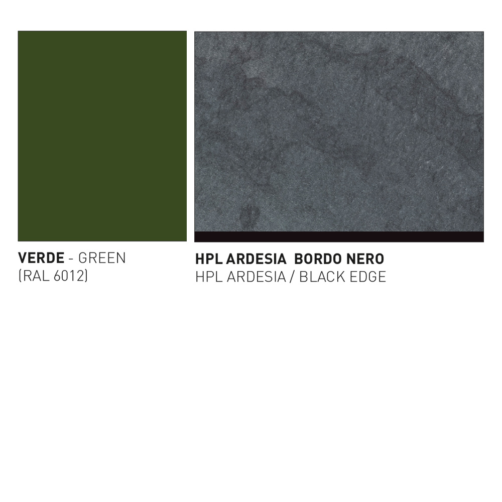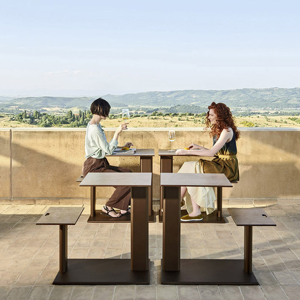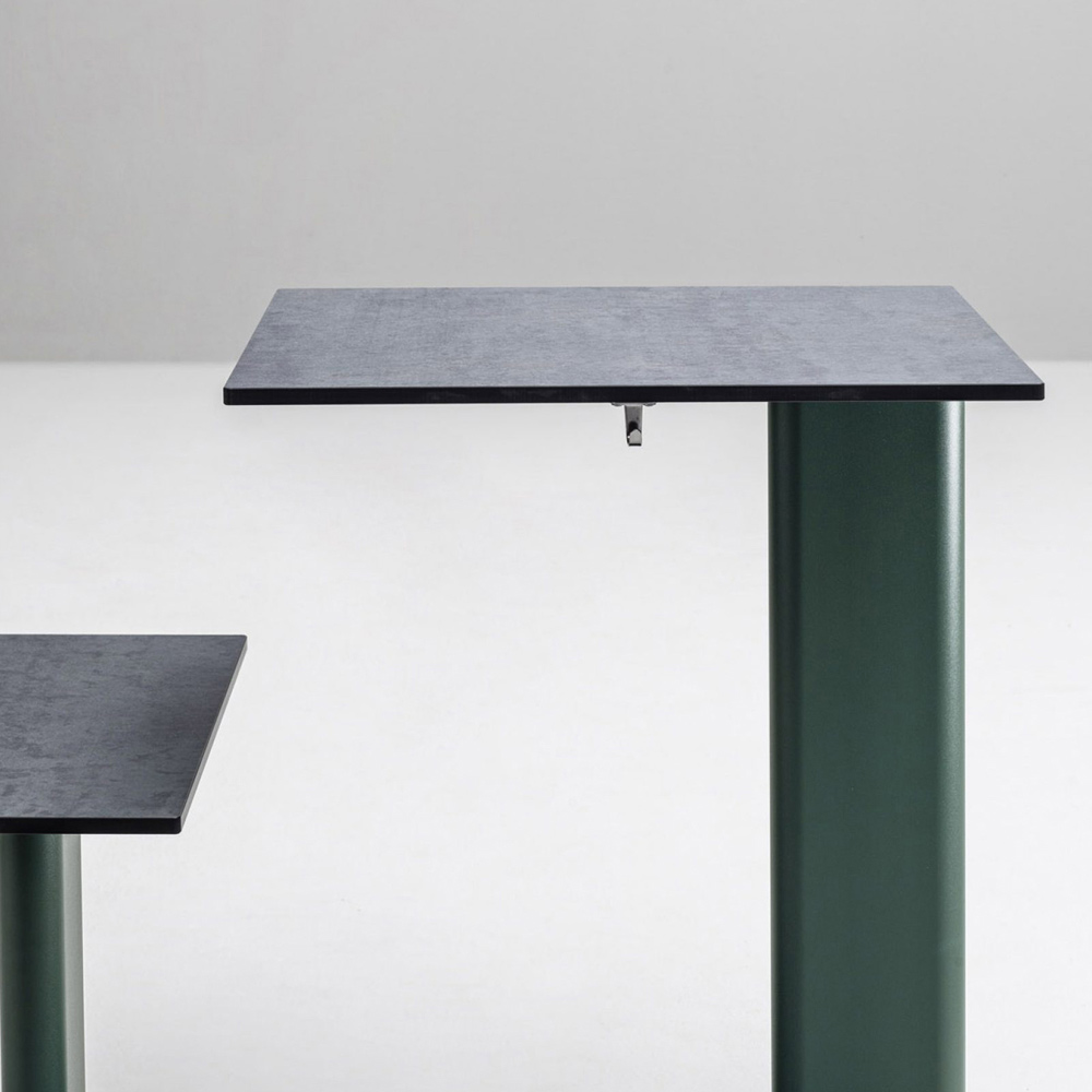 Bord med sammanfogad sits i aluminium och skiva i färgad HPL Tillverkad i Italien.