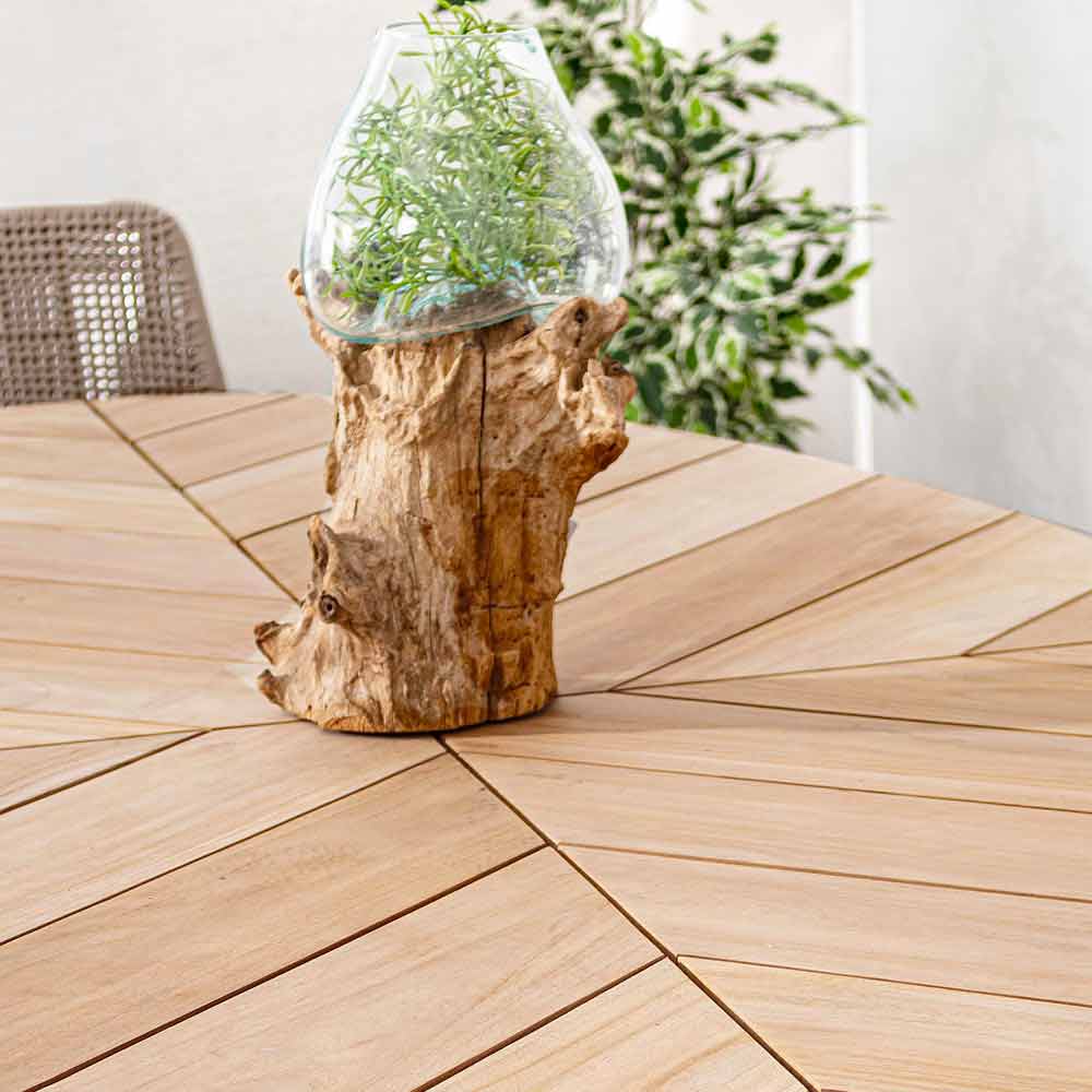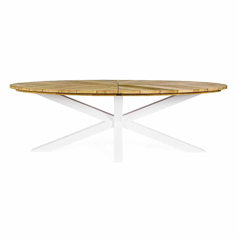 Topp i teak (klass A) - SVLK (certifierat trä från hållbara skogar), ben i pulverlackerad aluminium (polyester). Ferramente i galvaniserat stål.