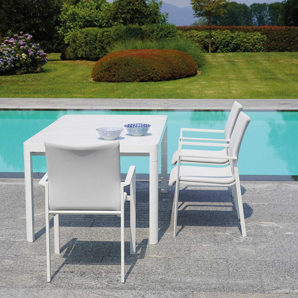 väsentliga linjer med en sommarsmak, perfekt för att komplettera och berika alla möbler, från den klassiska trädgården eller inhemska terrassen till den mest exklusiva kontraktsmiljön. Detta bord är modernt och funktionellt, perfekt för formella och informella tillfällen där det vinner centrum för uppmärksamheten tack vare sin