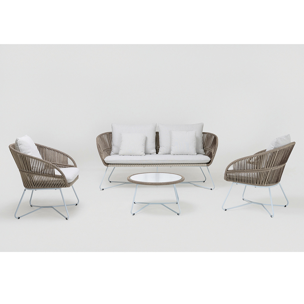 Olefin/PP ROPE med en tvåfärgad pärlvit och cappuccino finish och sits- och ryggdyna i