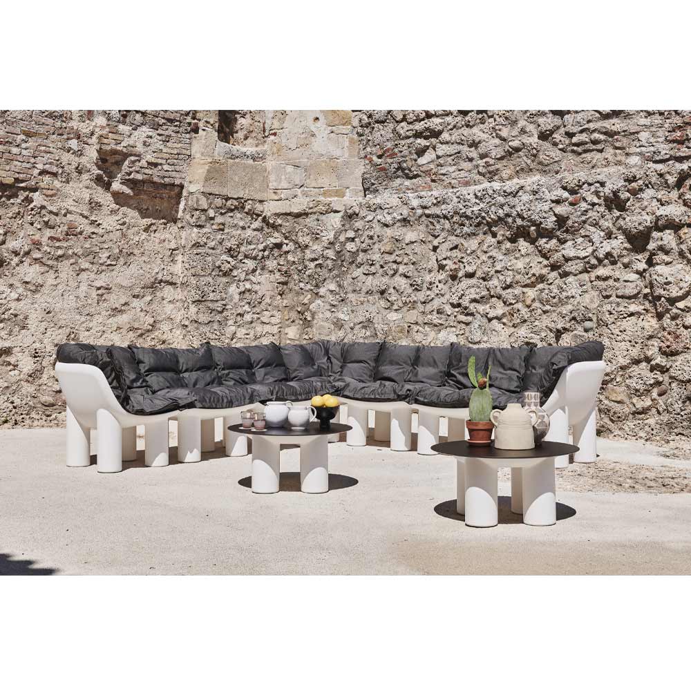karaktär men samtidigt fräsch och förfinad. Dess design gör den perfekt för att skapa praktiska och bekväma utomhuskompositioner i komfortens namn. Nyckelelementet som kännetecknar inredningen är benen som ger