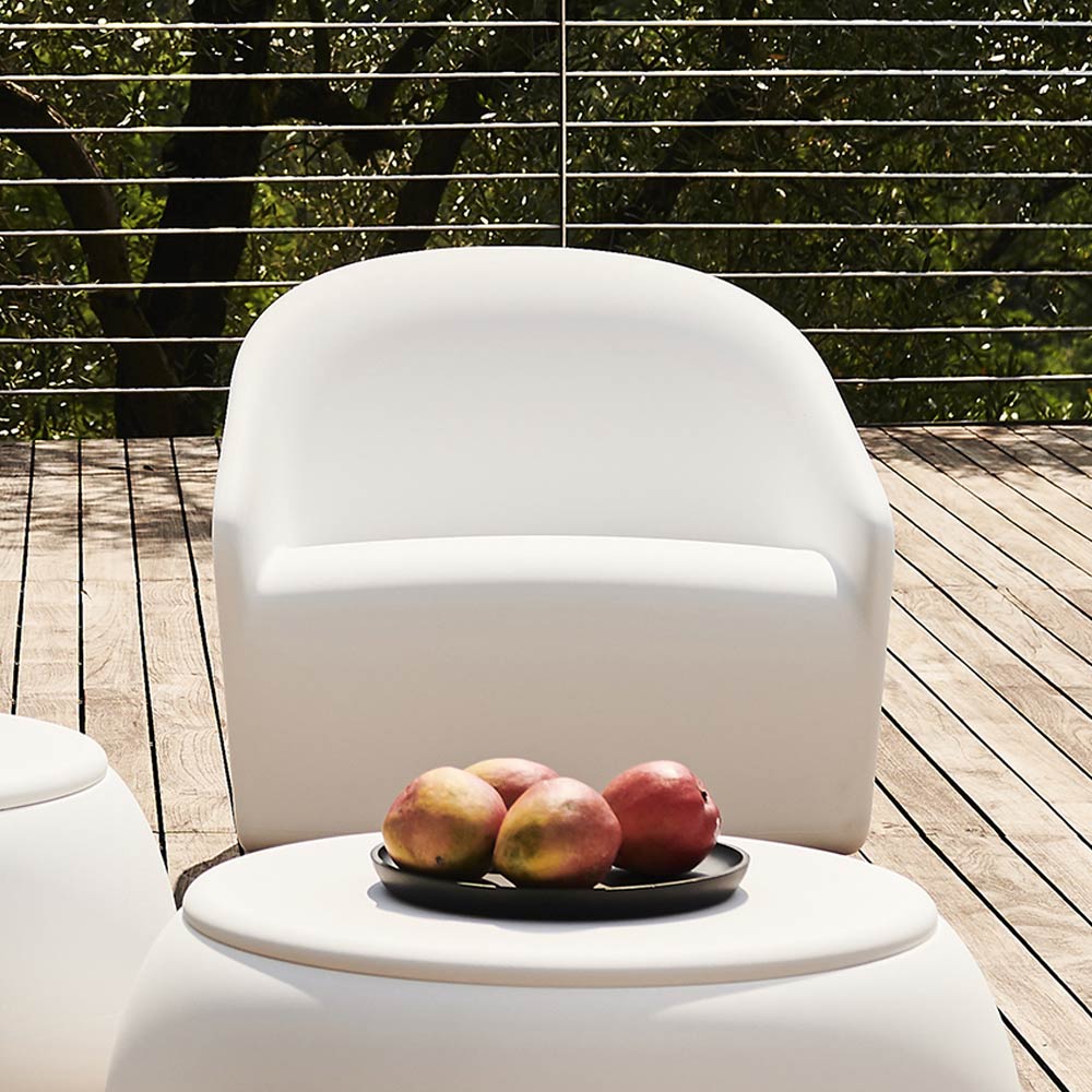 Trädgårdsfåtölj i ogenomskinlig färgad polyeten tillverkad i Italien.