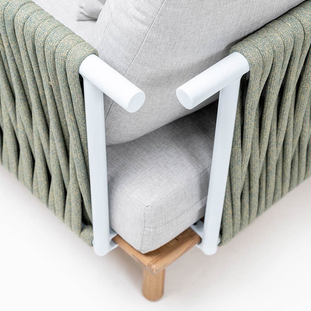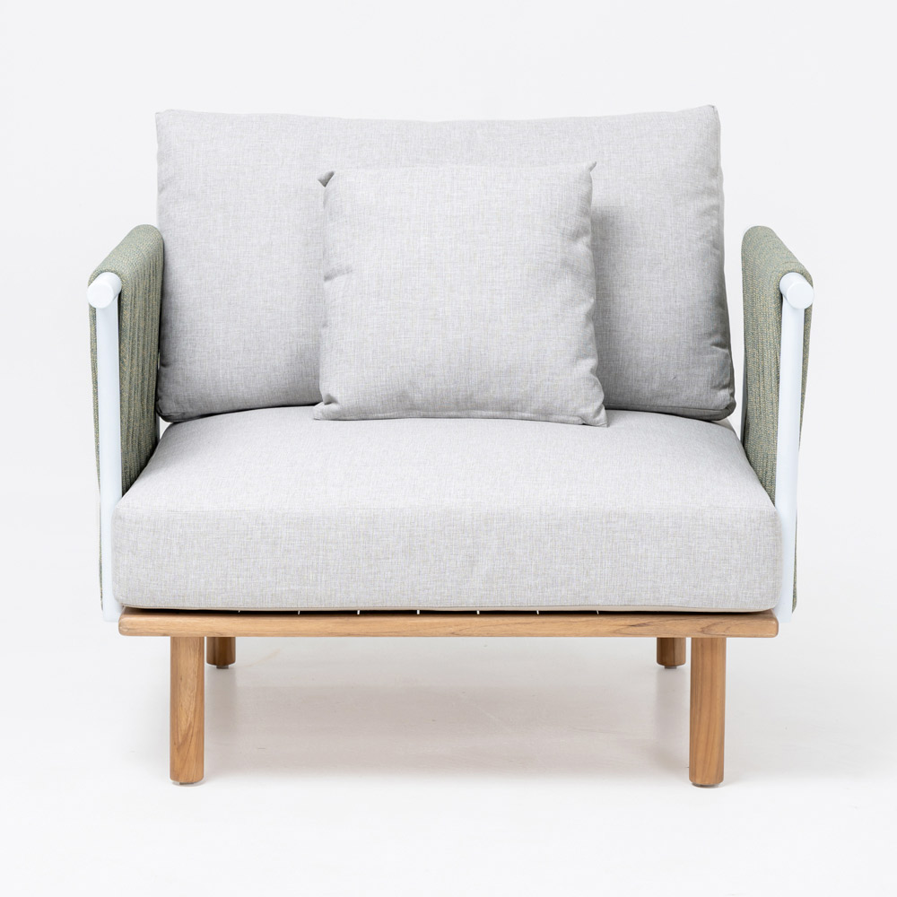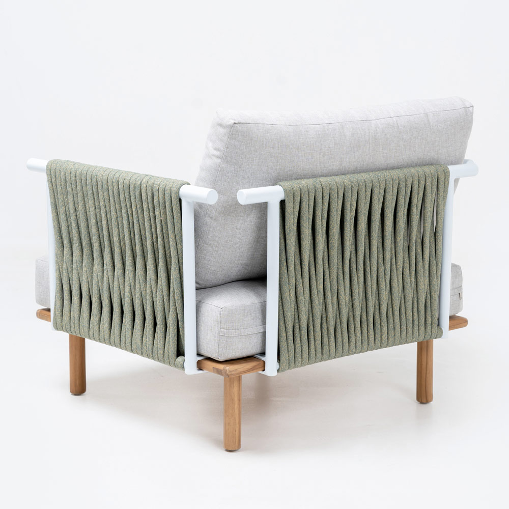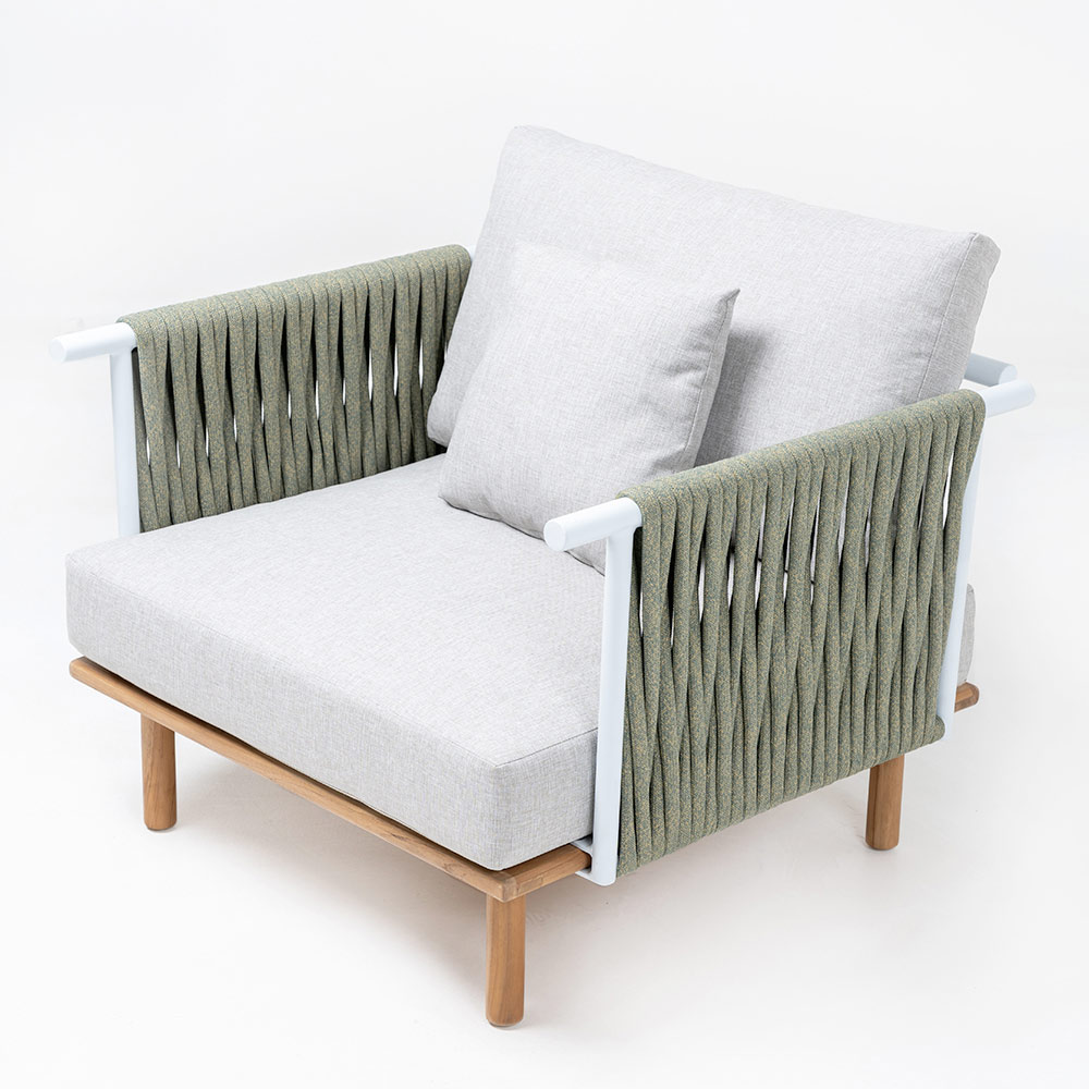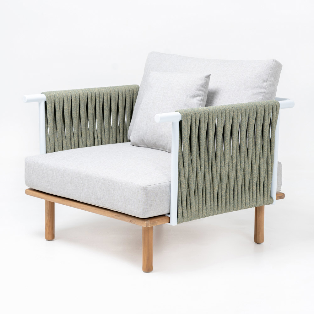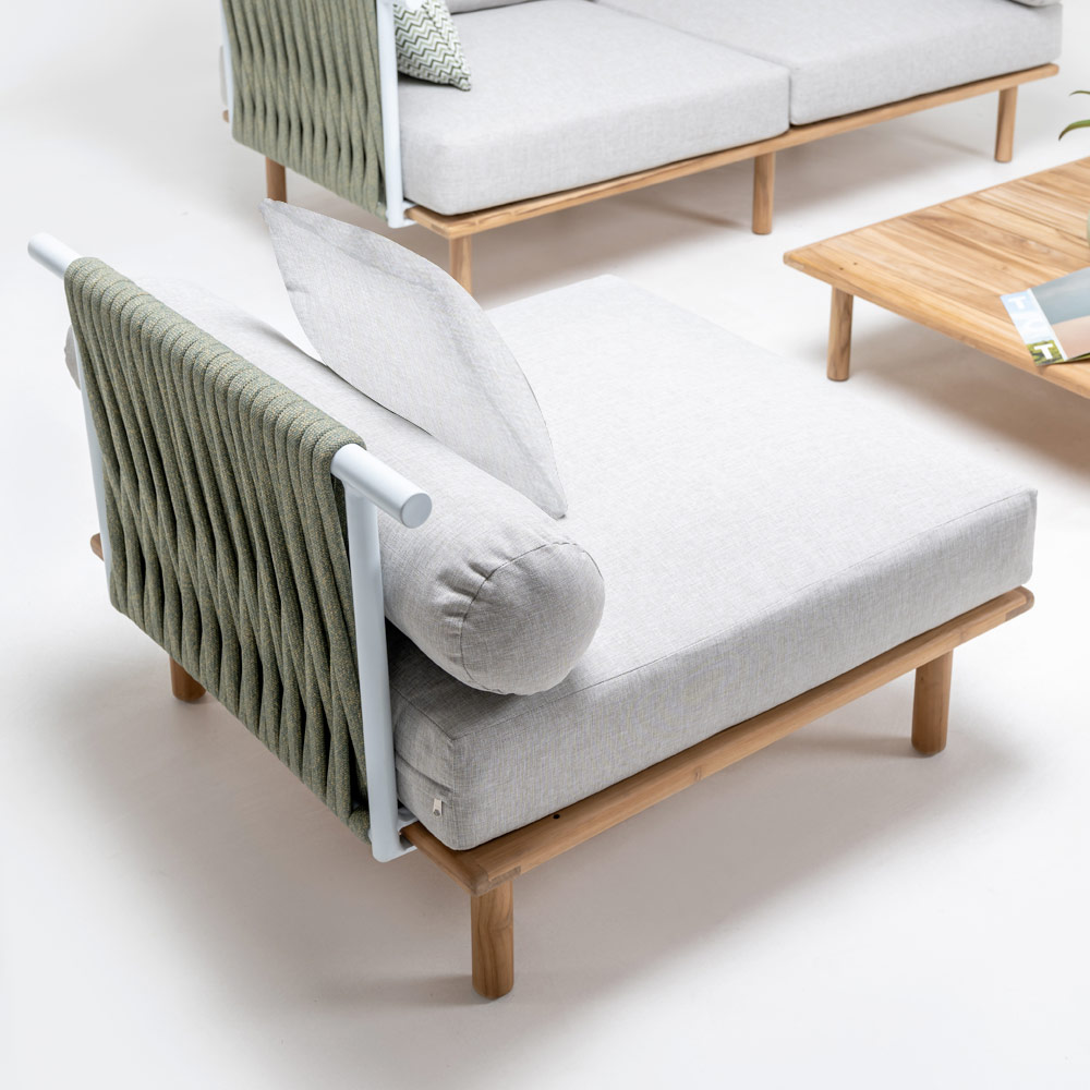 Trädgårdsfåtölj i teak, ryggstöd i aluminium och väv och dyna i Olefin/PP ROPE