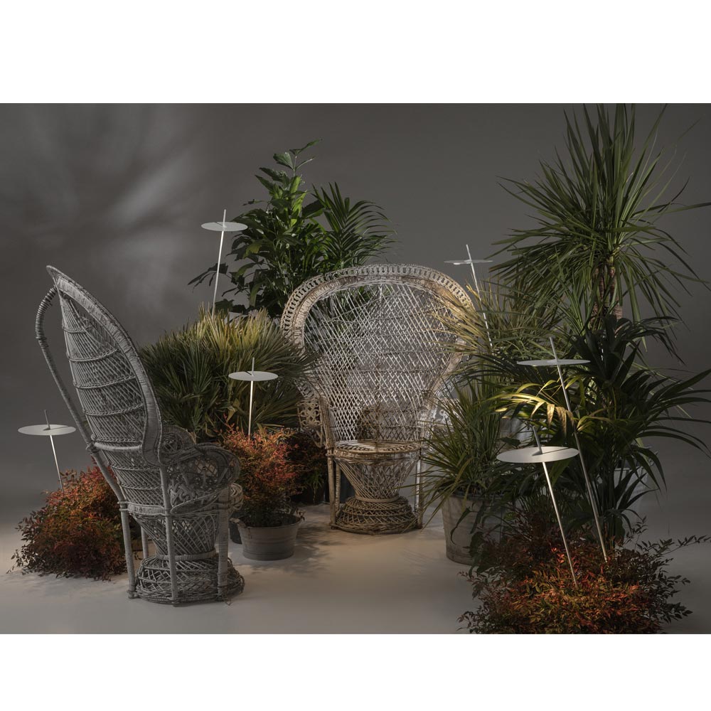 Denna originella och unika golvlampa för trädgården har en modern design med en näckrosbladform.