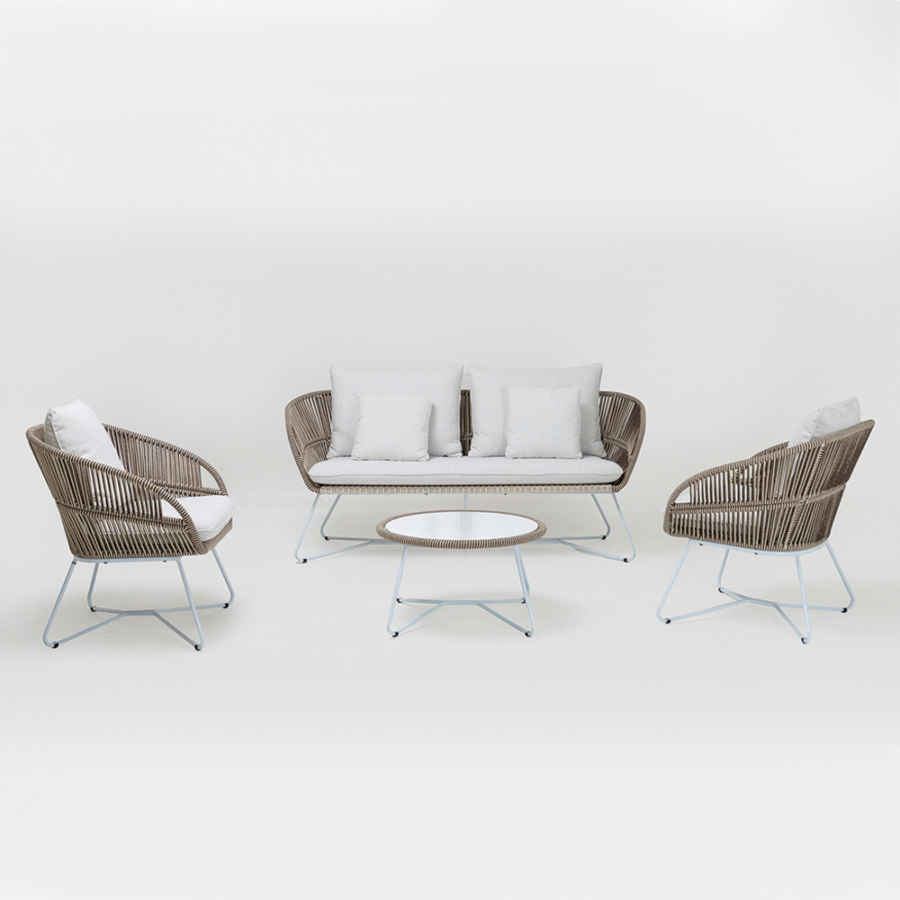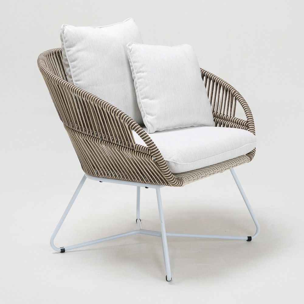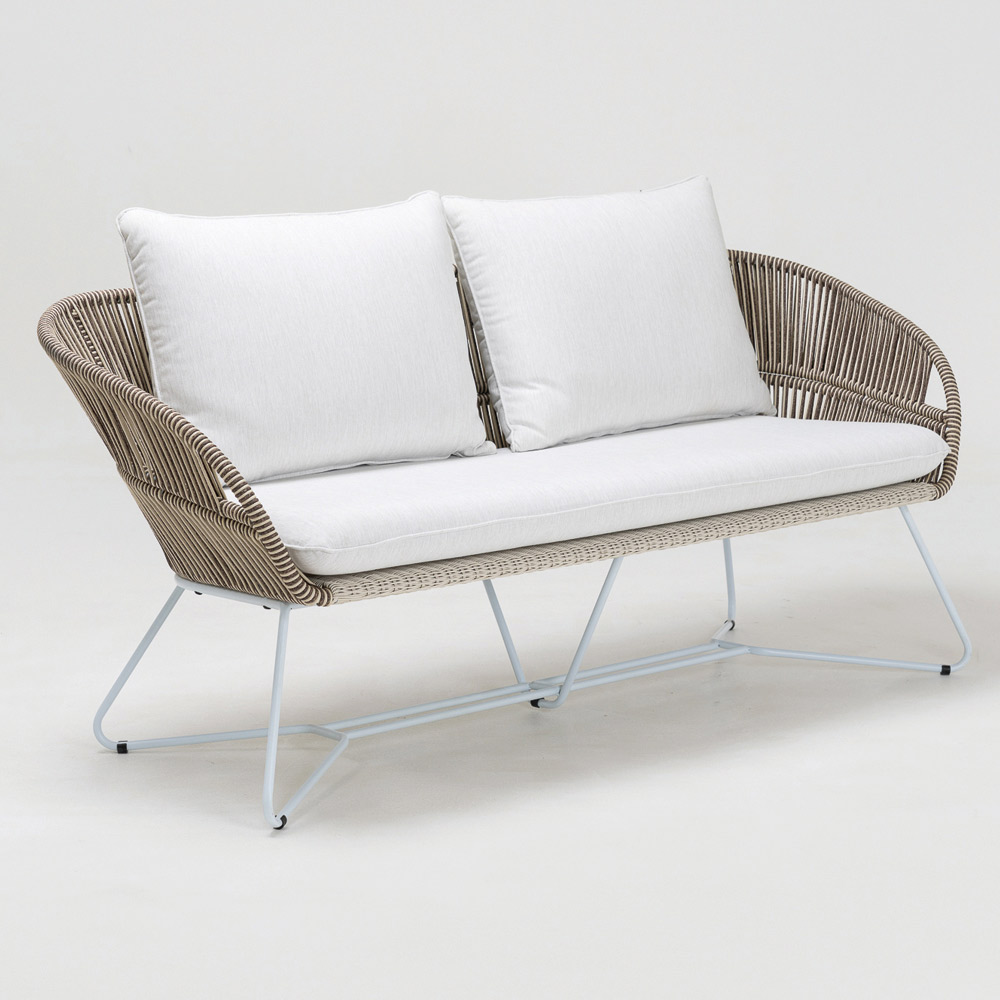 Olefin/PP ROPE-väv med tvåfärgad pärlvit och cappuccino finish och sitt- och ryggdyna i utomhusmaterial