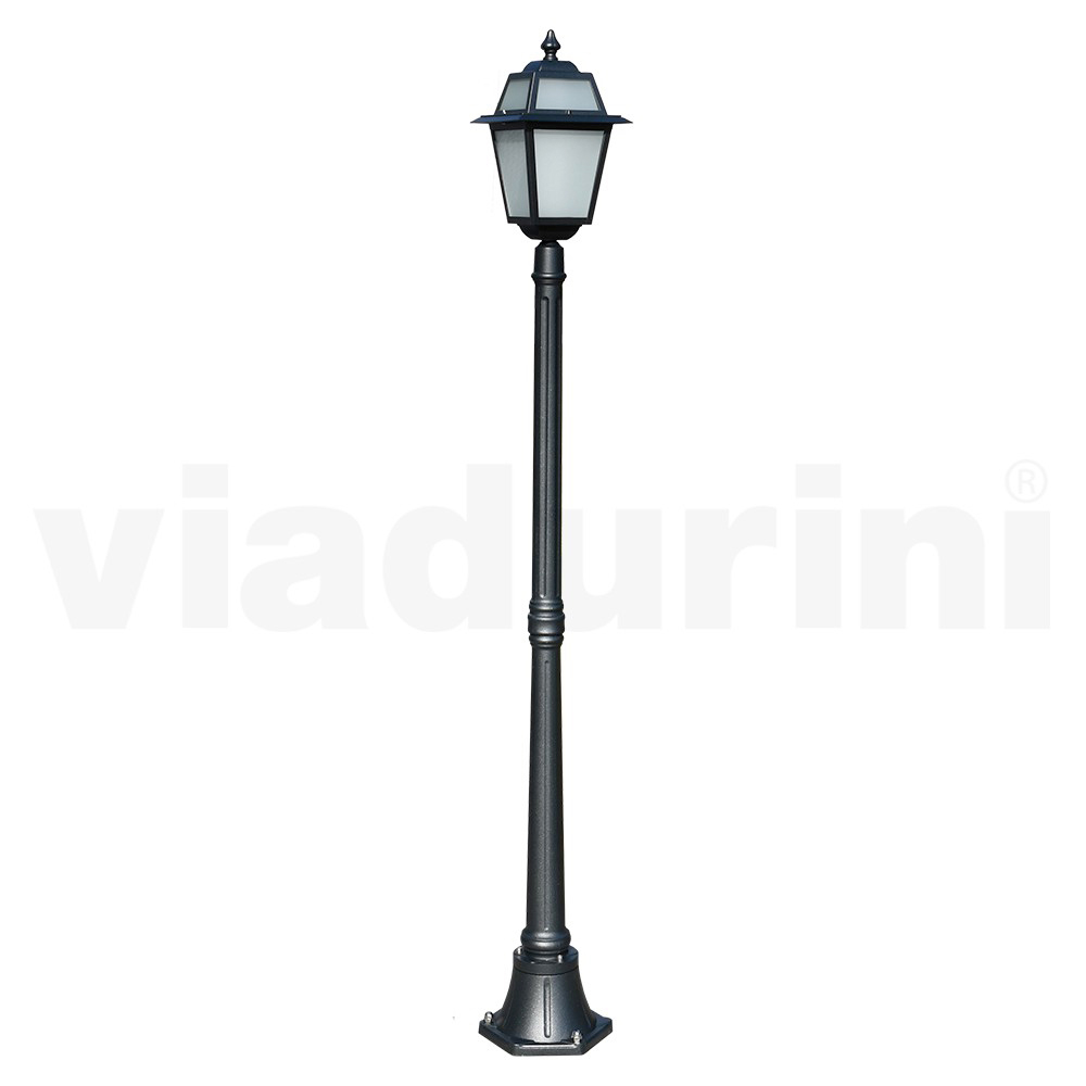 Trädgårdslampa tillverkad med antracitfinish formgjuten aluminiumstruktur och sandblästrad glasdiffusor , helt Made in Italy.