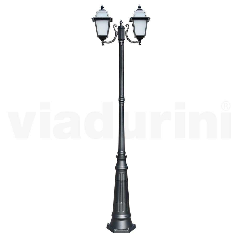 Denna gatlykta i gjuten aluminium med sin antracitfinish är ett elegant val för alla utomhusmiljöer. Med en klassisk och elegant design har den utarbetade detaljer som framkallar en atmosfär av svunna tider. De 2 lyktorna, med uppmärksamhet på de minsta detaljerna, sprider ett varmt och mjukt ljus, perfekt för att skapa en lysande bana i din trädgård eller för att elegant avgränsa en utomhus relaxavdelning. Soliditet och skönhet möts i denna gatlykta, designad för att hålla över tid och motstå atmosfäriska ämnen. Elegant och funktionell , det kommer att vara den lysande signaturen för ditt utomhusutrymme.