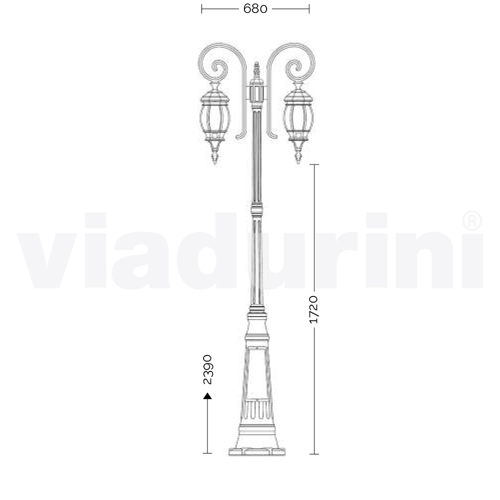 Anika är en tvåljus utomhuslyktstolpe handgjord i Italien med högkvalitativt material: formgjuten aluminiumstruktur och transparent polykarbonatdiffusor (garanterar optimal och alltid homogen ljusspridning).