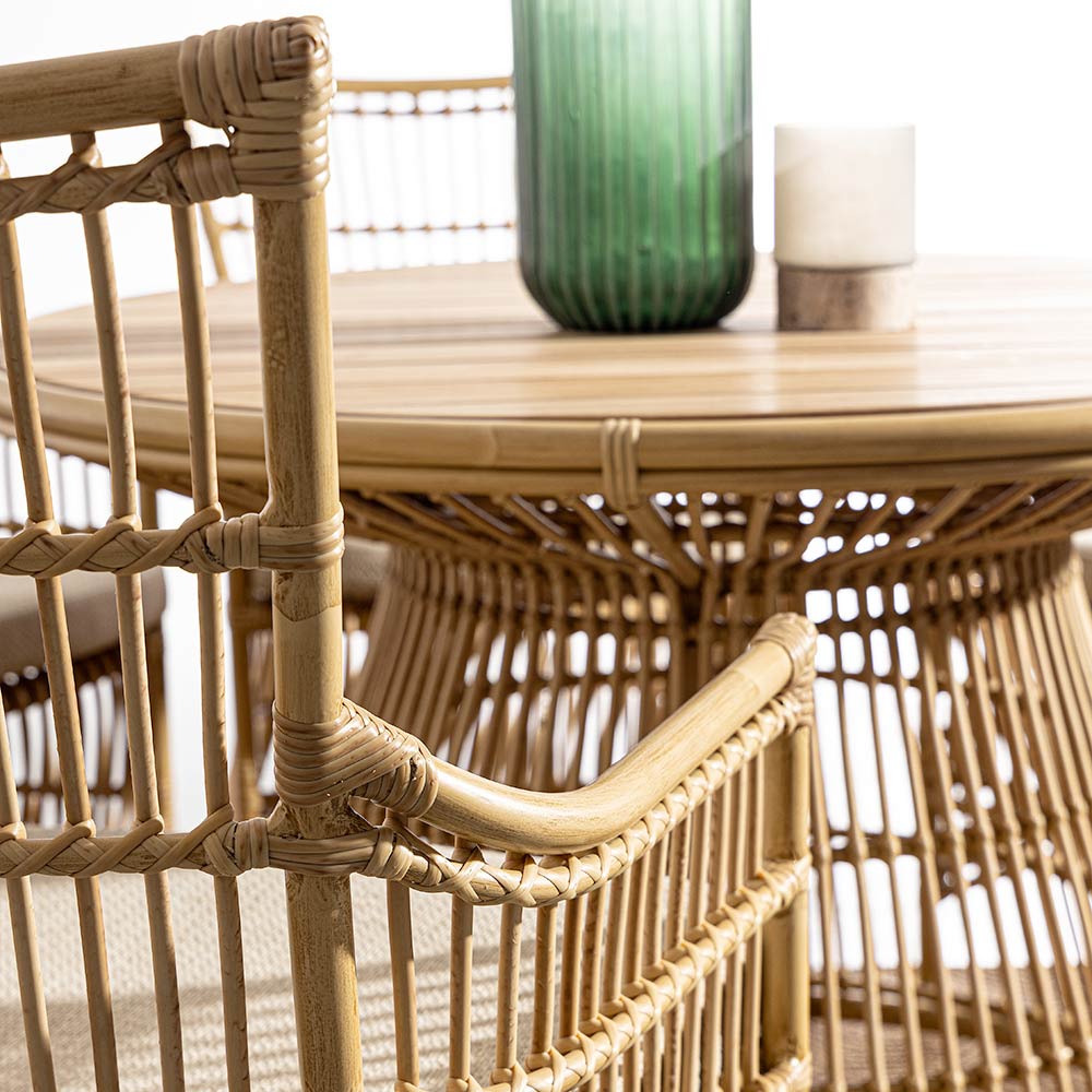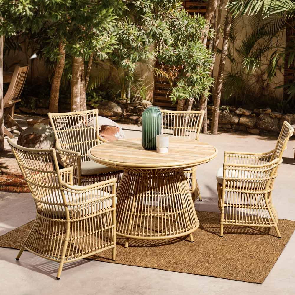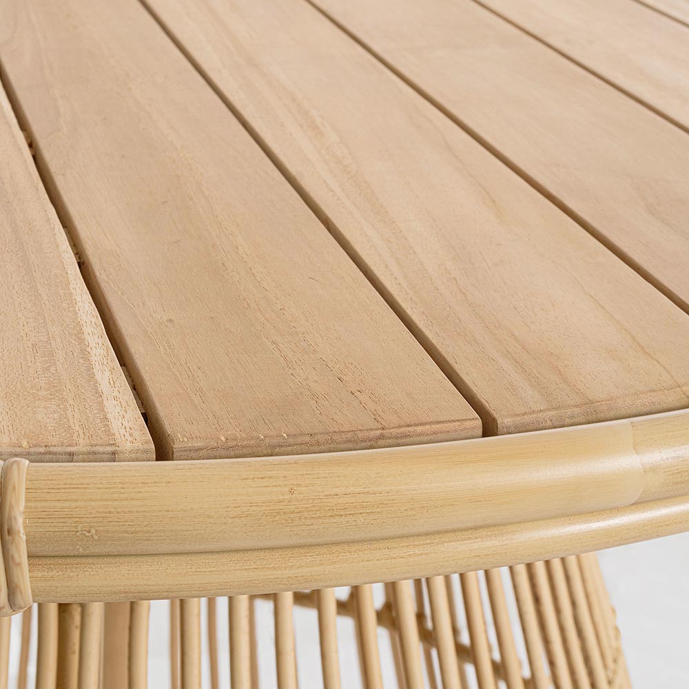 Detta trädgårdsbord är ett riktigt mästerverk av design och funktionalitet . Med sin organiska form och rena linjer är det ett inredningselement som utmärker sig för sin stil och elegans, perfekt för luncher och middagar utomhus. Bordsskivan är gjord av trä, vilket säkerställer enastående hållbarhet och enkelt underhåll. Aluminiumbasen i rottingeffekt skapar en visuell effekt av lätthet och öppenhet, vilket gör att bordet kan integreras perfekt med den omgivande miljön, oavsett om det är grönskan i trädgården eller terrassen i ett modernt hus. Inte bara ett bord, utan en mötesplats där design och natur blandas för att skapa oförglömliga stunder.