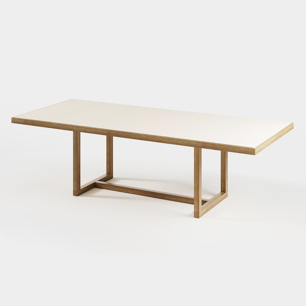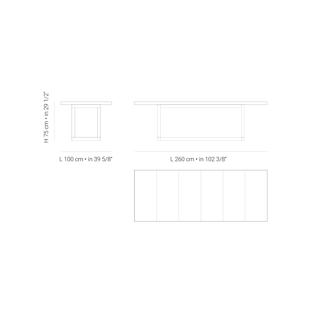 Trädgårdsmatbord i Iroko-trä och skiva i stengodsplattor tillverkat i Italien