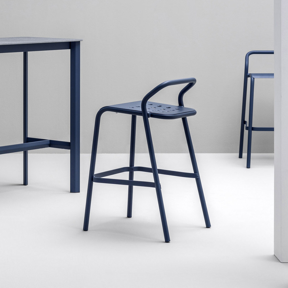 autentisk komfort. Strukturen och fötterna är gjorda av målad aluminium, en process som gör denna pall