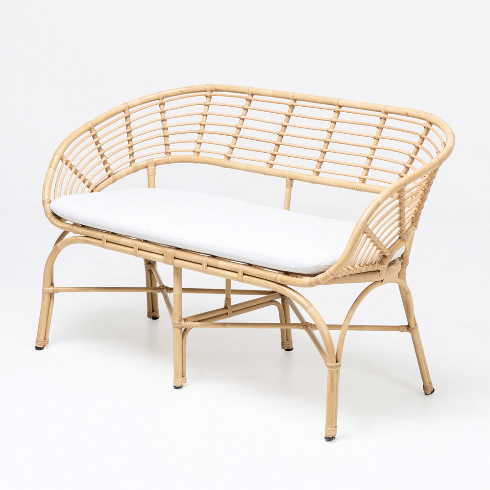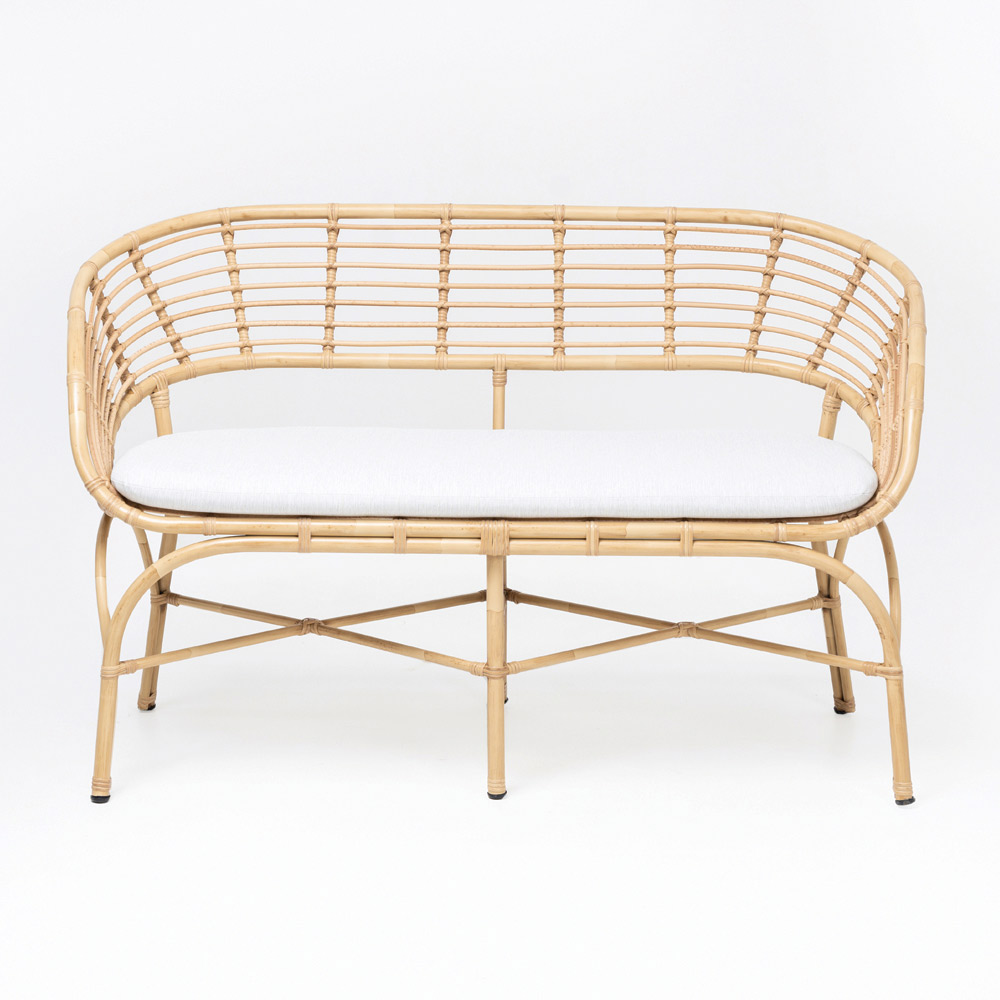 Den här polyrattan trädgårdssoffan är ett exempel på lätt och elegant design som inbjuder dig till stunder av ren avkoppling. Dess struktur, med sina böjda linjer och den naturliga färgen på polyrattan, framkallar en atmosfär av lugn och enkelhet, perfekt för att skapa ett hörn av paradiset i trädgården eller terrassen.