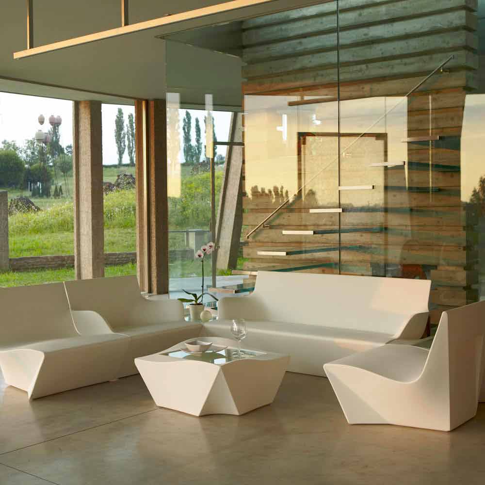 Kami Yon är en tvåsitssoffa med armstöd med en abstrakt men väsentlig design som påminner om japansk konsts traditionella origami, och presenterar därmed linjer som refererar till veck men ger form åt en möbel med mjuka, originella och eleganta linjer. Perfekt för modern och modern inredning både inomhus och utomhus.