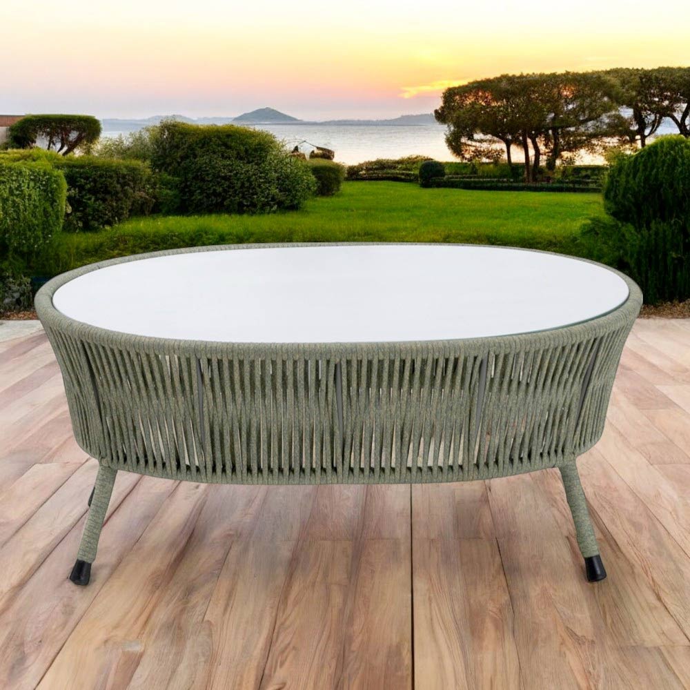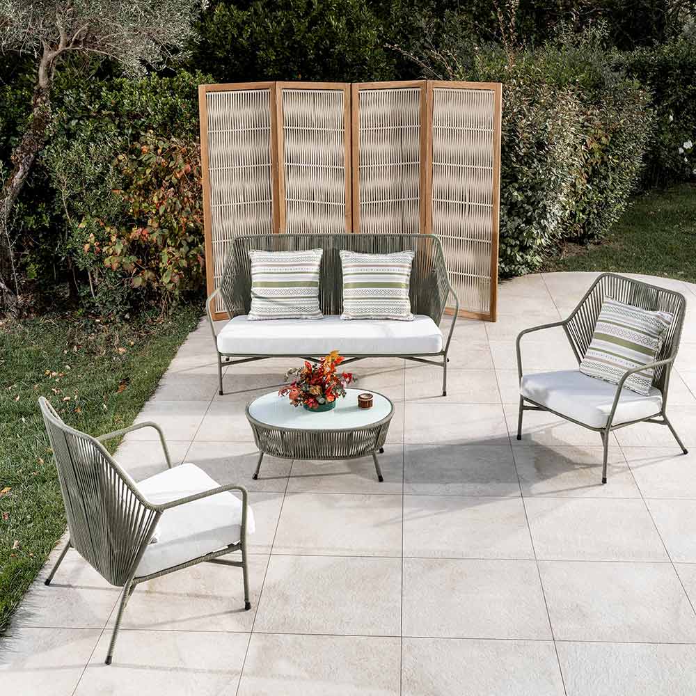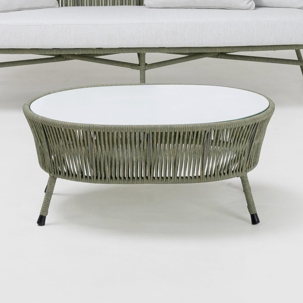 Trädgårdsbord i aluminium, ROPE+ repväv och glas