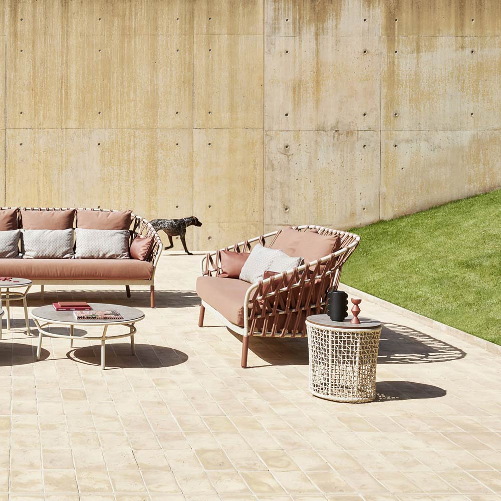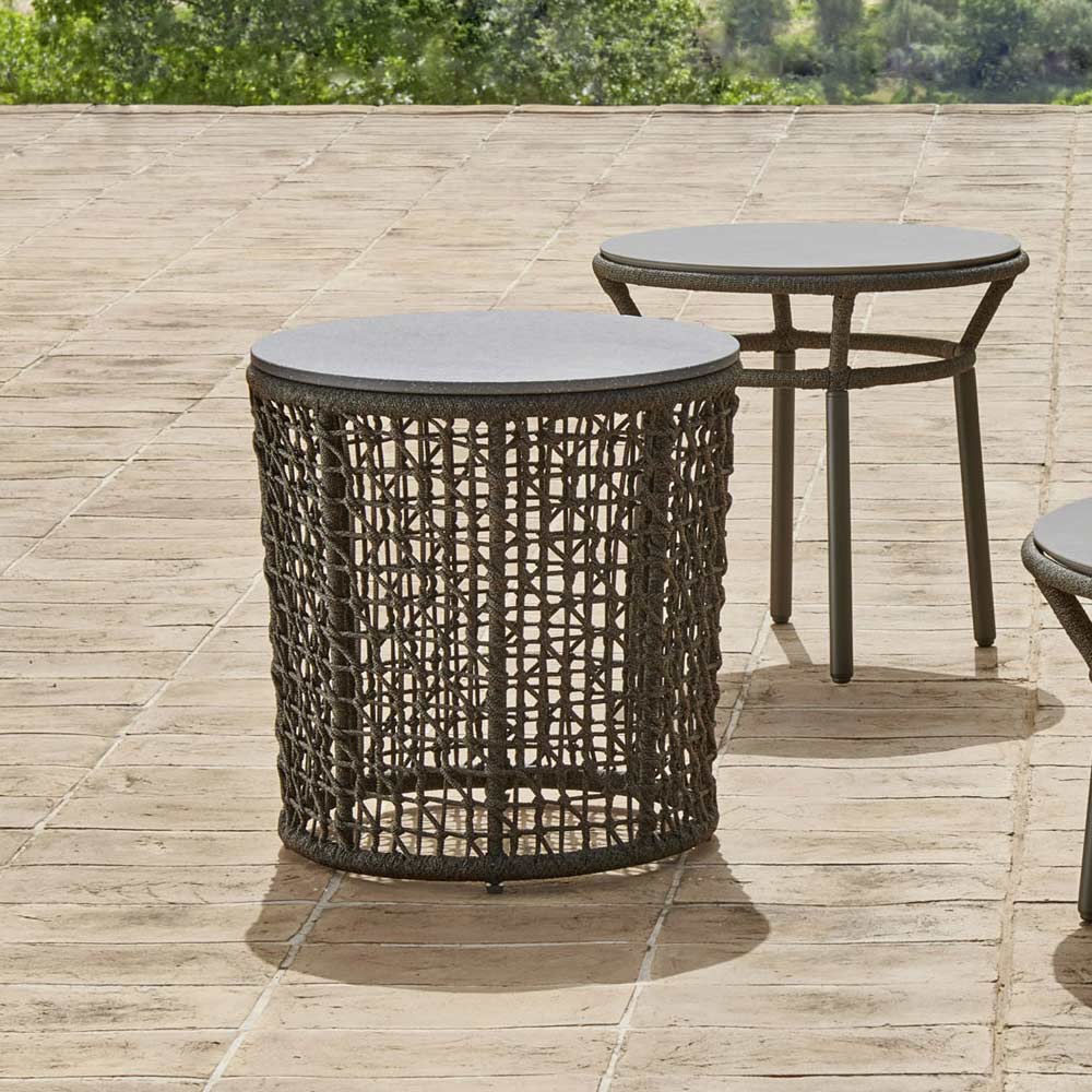 Soffbord utomhus med aluminiumstomme och repvävning Made in Italy.
