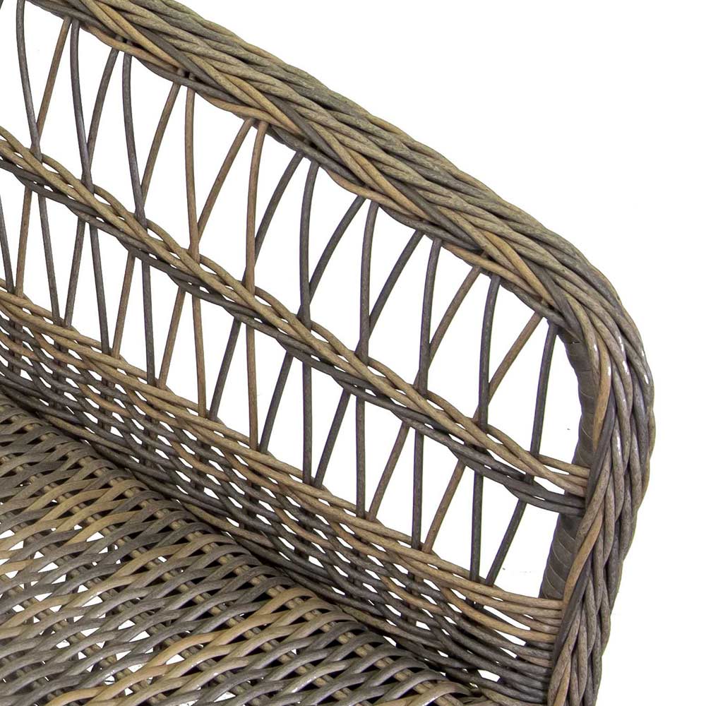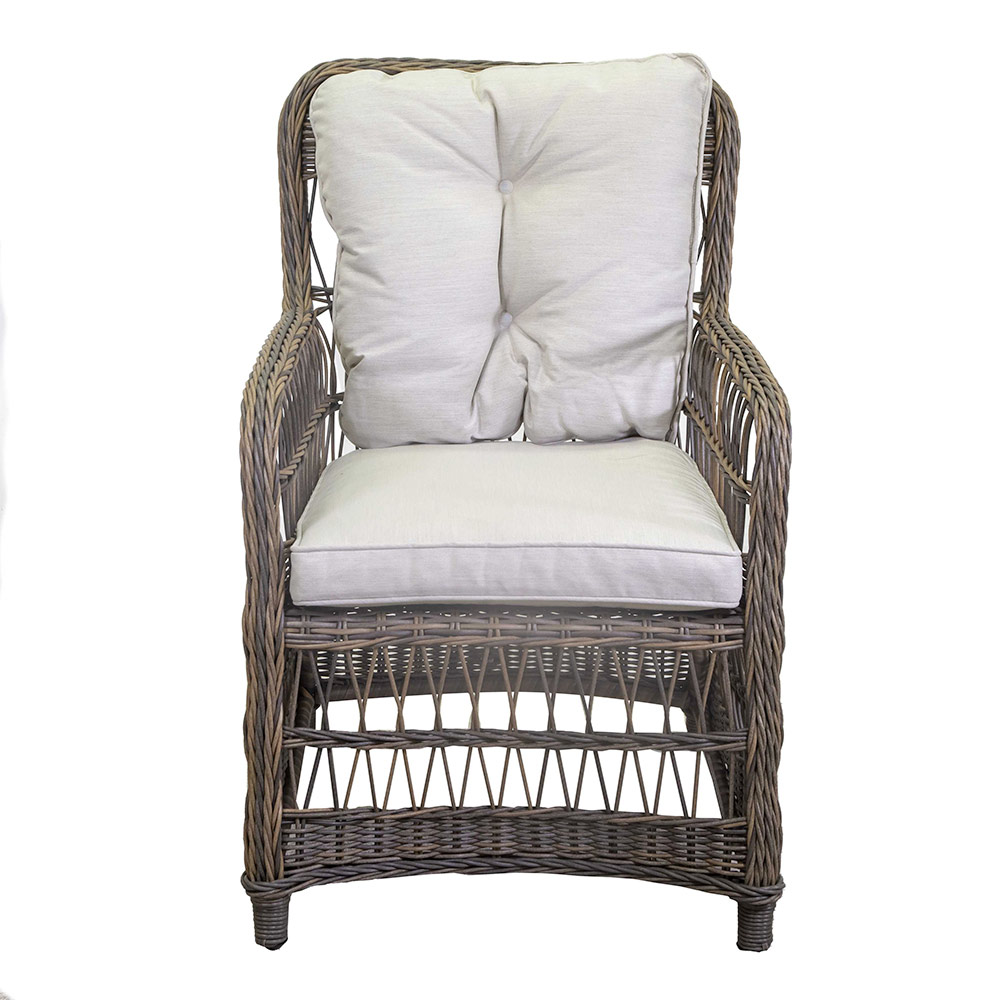 Polyrottingens neutrala färg matchar perfekt de mjuka och bekväma kuddarna, klädda i väderbeständigt tyg, vilket gör denna fåtölj idealisk för avkoppling i din trädgård, terrass eller på verandan.