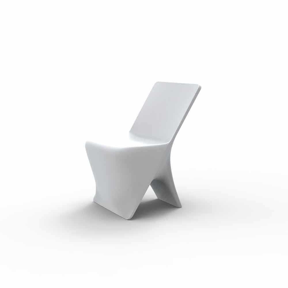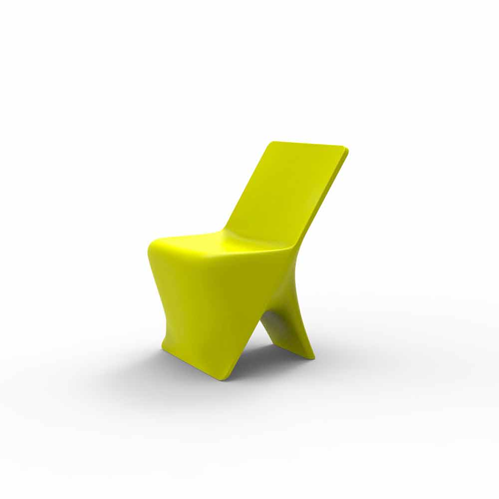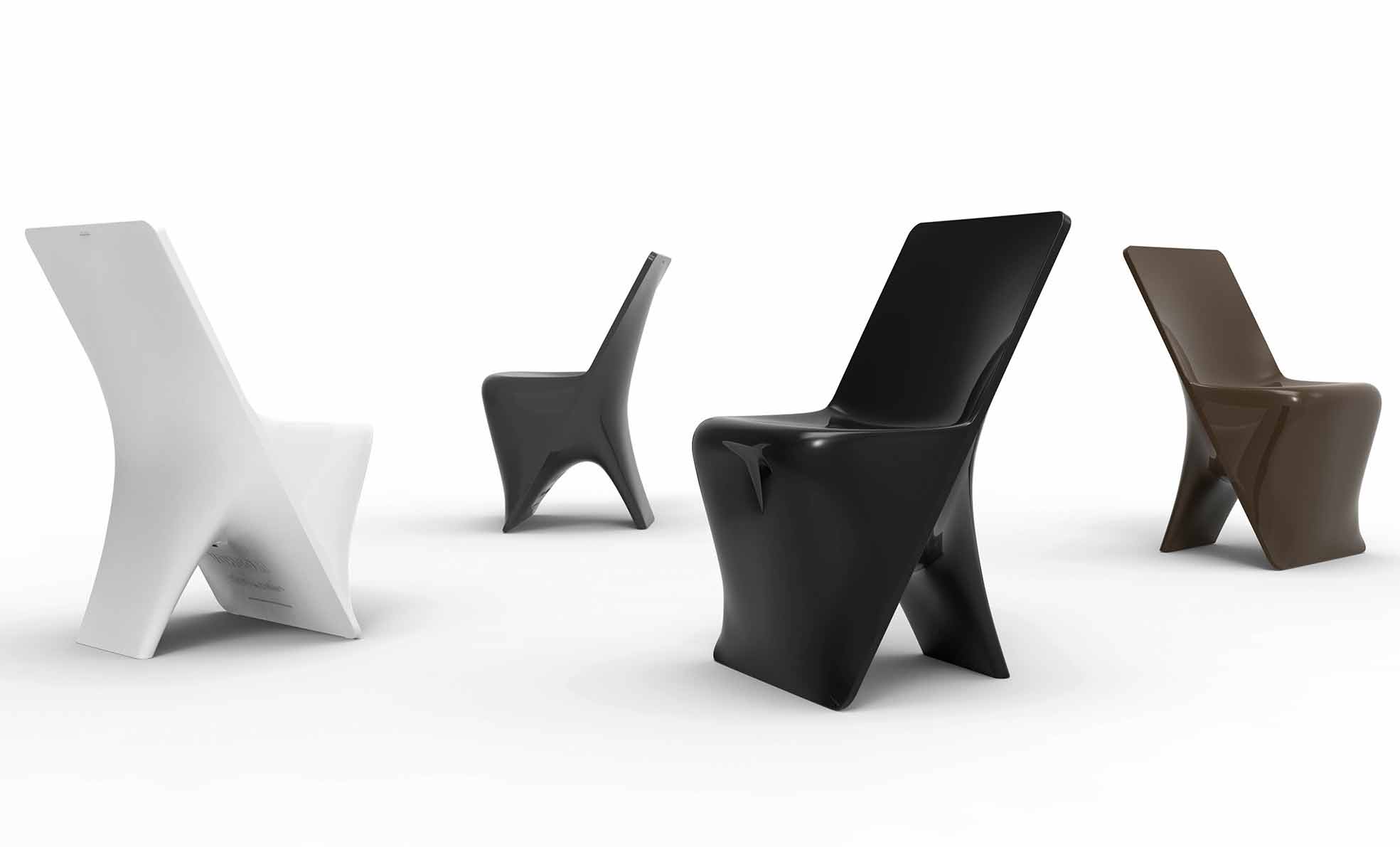Sloo by Vondom samling av designer Karim Rashid skapar en fusion av vätska och plast. Det uppfattas att plast älskar att flöda och vara amorf, resultaten är organiska former som blandar sig försiktigt på plana och släta ytor. Sloo-stolen är gjord av polyeten, ett material som tillåter intern eller extern användning, eftersom polyetenhartset är mycket motståndskraftigt mot stötar och extrema temperaturer.