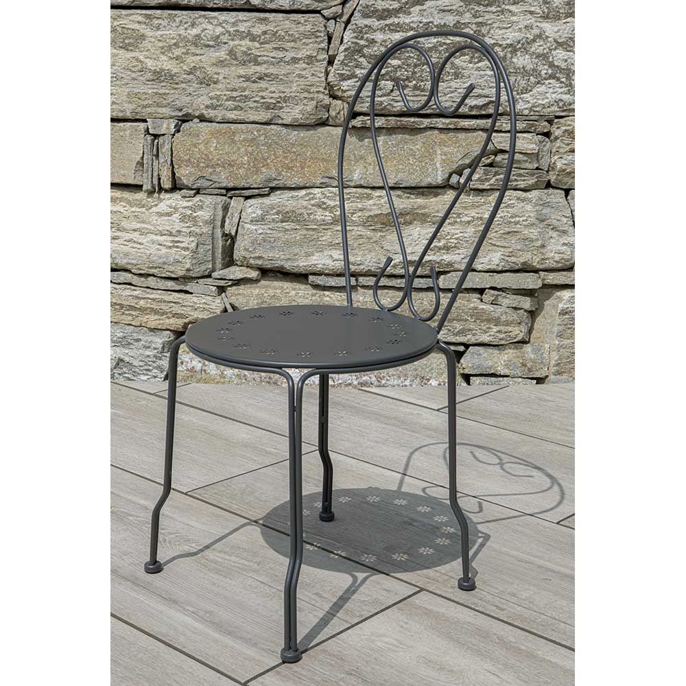 Stolen är tillverkad av vädertålig metall, perfekt för att njuta av stunder av avkoppling i trädgården, på terrassen eller i ett mysigt hörn av din uteplats. Uppmärksamheten på detaljer och finish gör denna stol mångsidig och lämplig för olika dekorativa stilar, från de mest klassiska och romantiska till de moderna och minimalistiska.