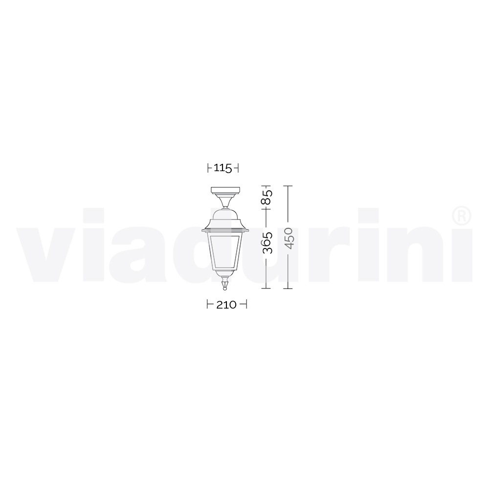 Aquilina är en taklampa för utomhusbruk handgjord i Italien med högkvalitativt material: formgjuten aluminiumstruktur och glasdiffusor tillgänglig: transparent eller sandblästrad.