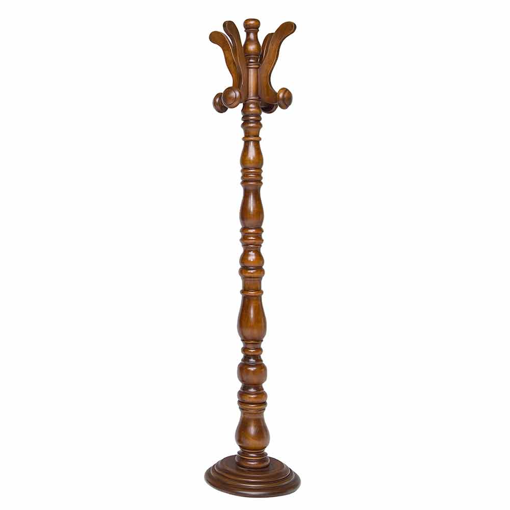 Klädstativ i bokträ med rund MDF-botten med enkla och slingrande linjer som lämpar sig för eleganta och raffinerade miljöer.