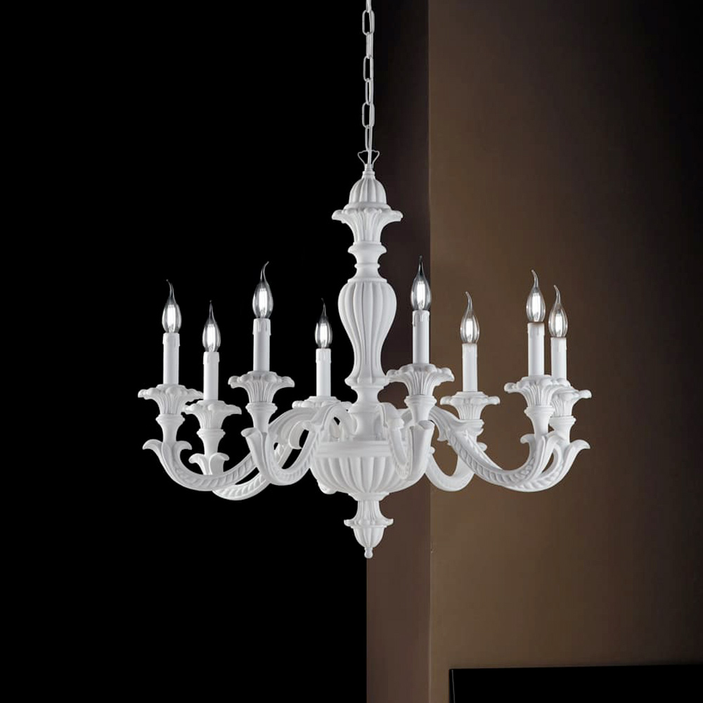 Finns i den delikata Shabby White -finishen, med en romantisk och lysande karaktär, eller i den dyrbara varianten Elfenben med bladguld , perfekt för eleganta och representativa miljöer, och denna ljuskrona passar harmoniskt in i vardagsrum, matsalar, viktiga entréer, klassiska lounger och prestigefyllda kontraktsmiljöer .