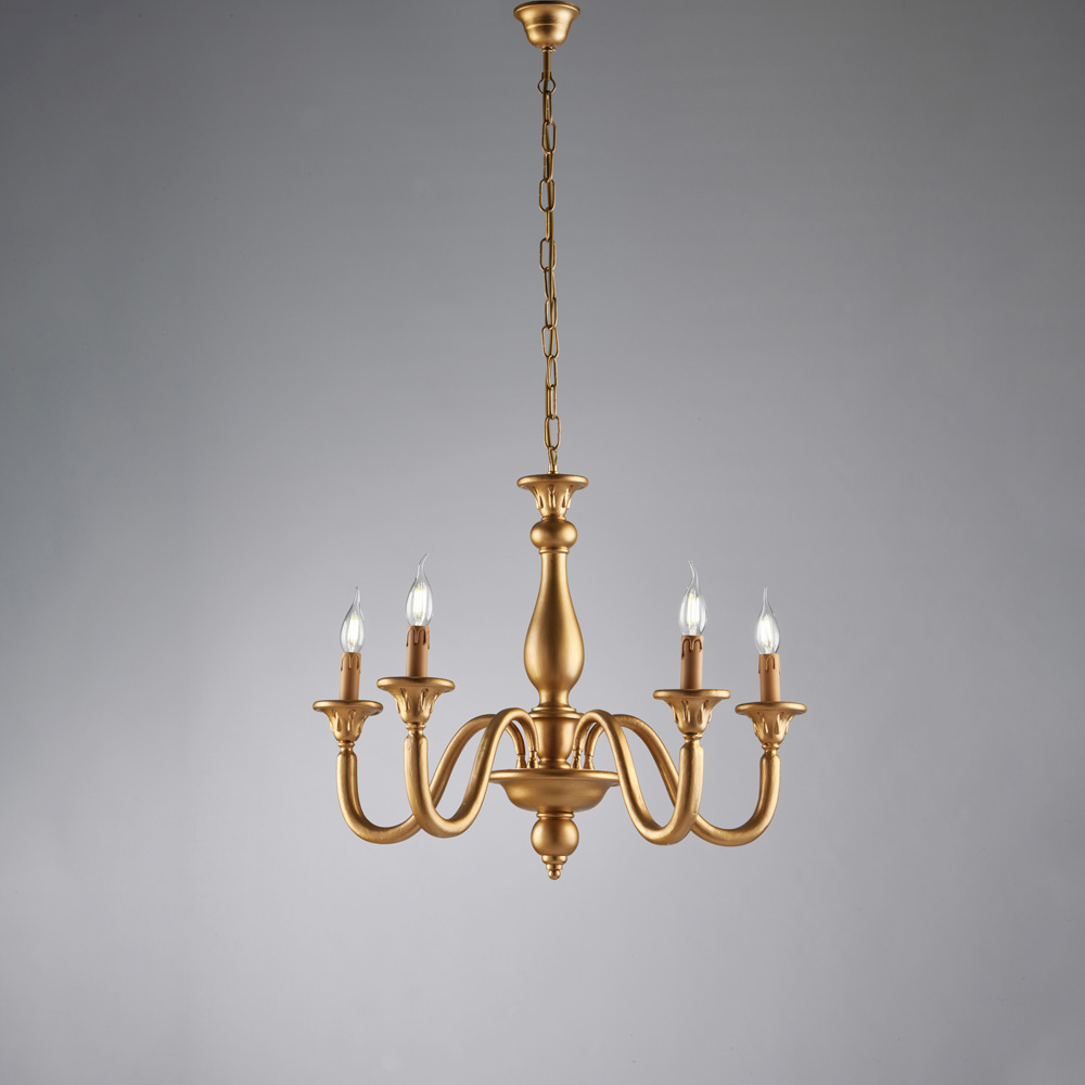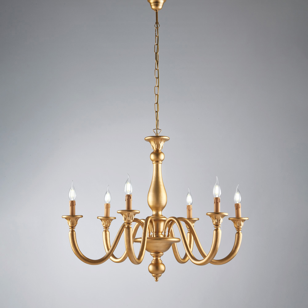 Elegant och tidlös, denna klassiska handgjorda träkrona tolkar traditionell italiensk stil och kombinerar harmoniska former och fängslande finish. Den smala strukturen, med böjda armar och ljus i stearinljusstil , ger visuell lätthet och skapar en varm och välkomnande atmosfär, perfekt för utrymmen med tidlös elegans.