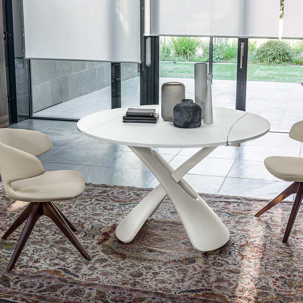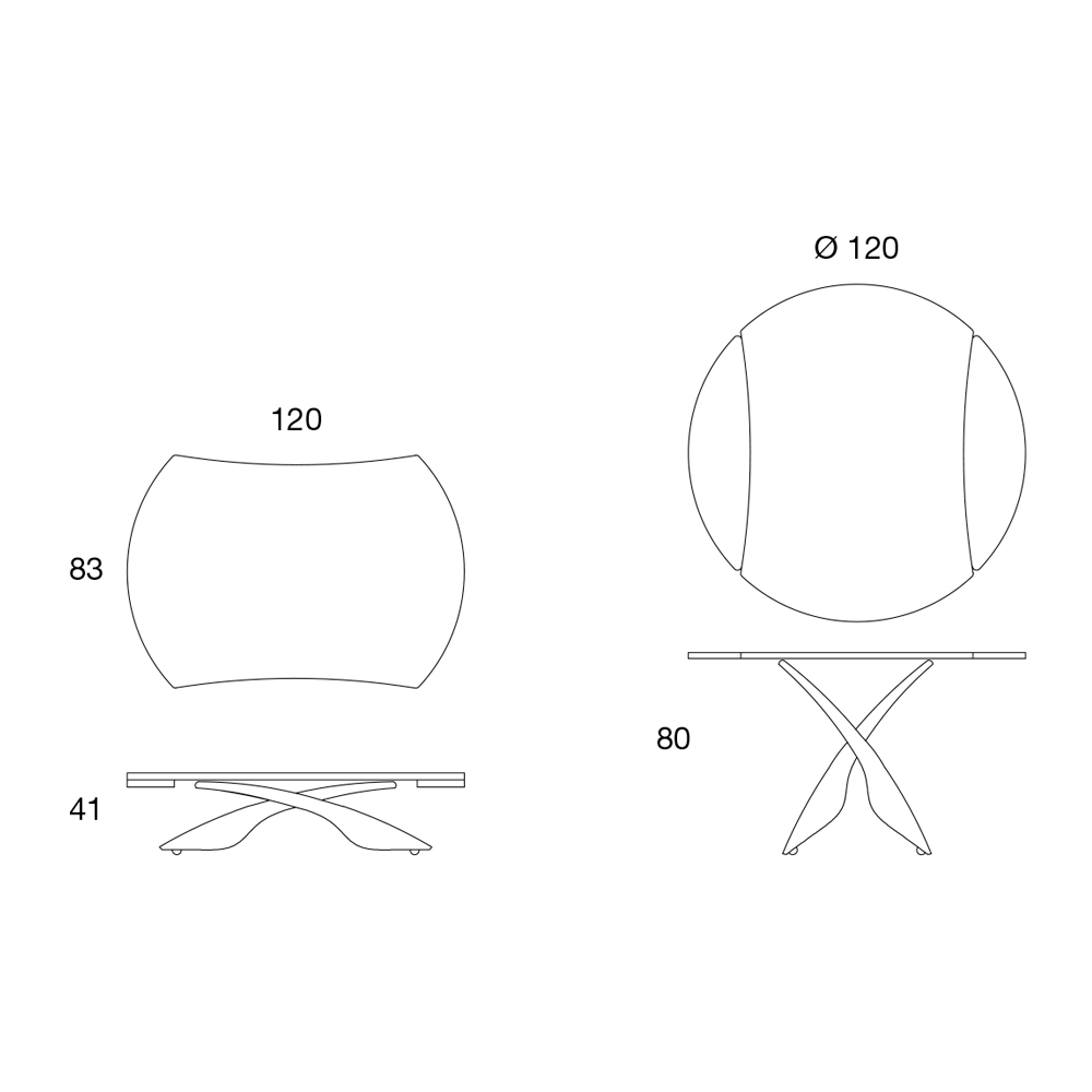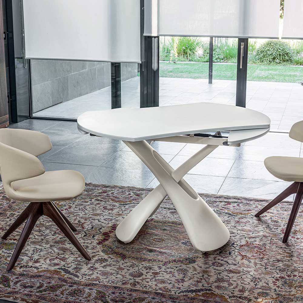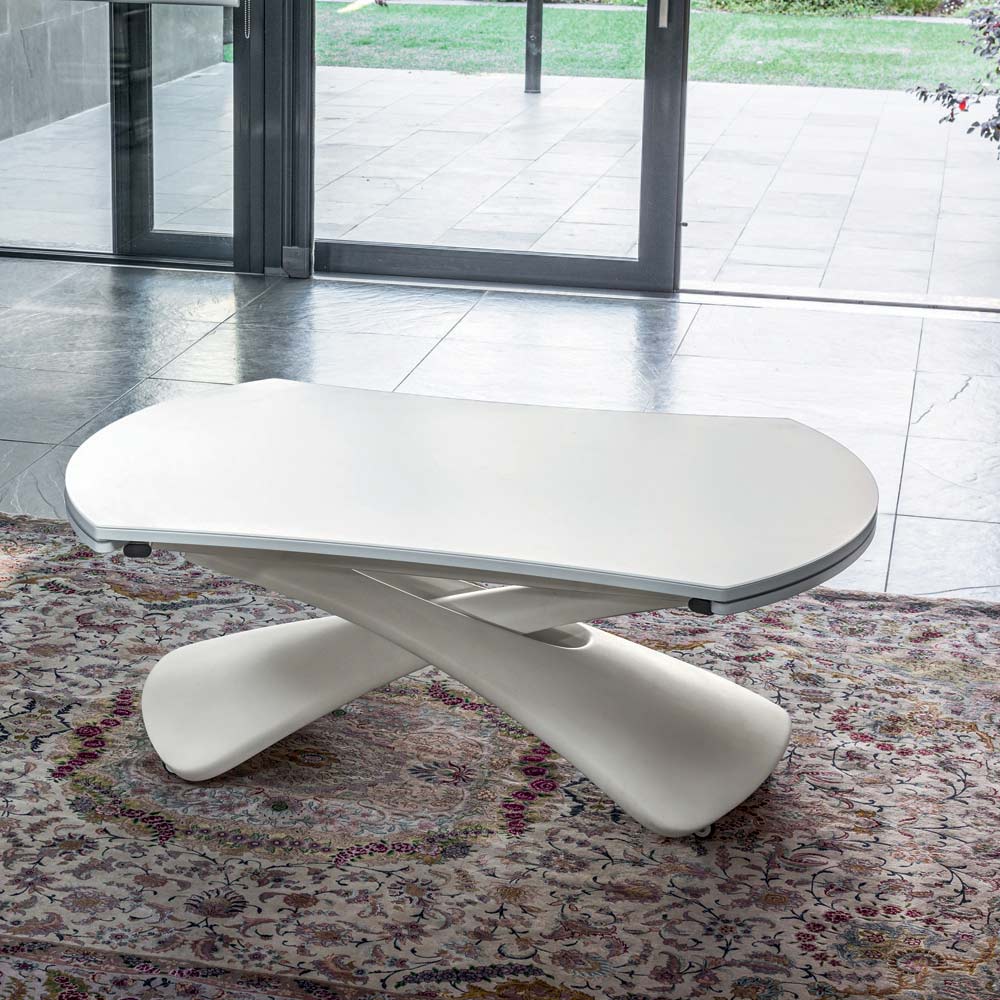 Soffbord konverterbart till ett matbord med metallunderrede och glasskiva, tillverkat i Italien.
