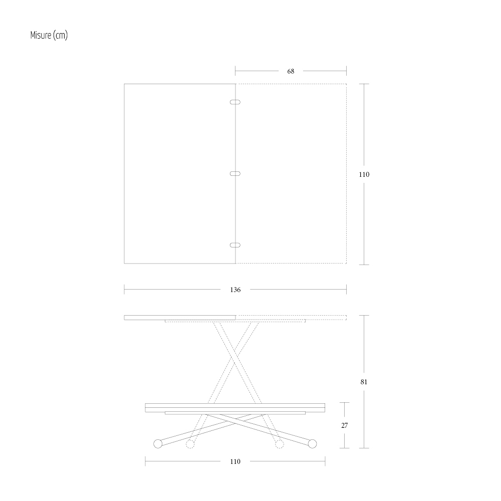 OBS : när du öppnar bordet är det nödvändigt att lyfta förlängningen, placera den i nivå med toppen och först då öppna den.