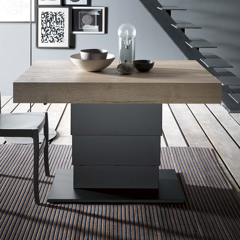 mattsvartmålad metallbotten . Dess utrymmesbesparande estetik är perfekt för att optimera utrymmen i matsalar eller små vardagsrum. Detta är möjligt tack vare de