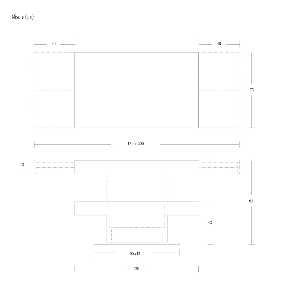 OBS : när du öppnar bordet är det nödvändigt att lyfta förlängningen, placera den i nivå med toppen och först då öppna den.