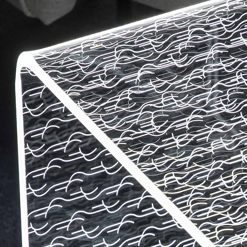 Detta ledde bordslampa är mycket mer än en enkel armatur: helt i vikt akryl kristall finns i 2 varianter av laser graverat texturer som förbättrar de kromatiska nyanser, de ursprungliga gravyrer lyser upp längs alla väggar tack vare en 'single ledde band placerade i mitten.