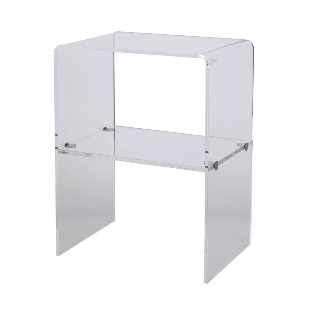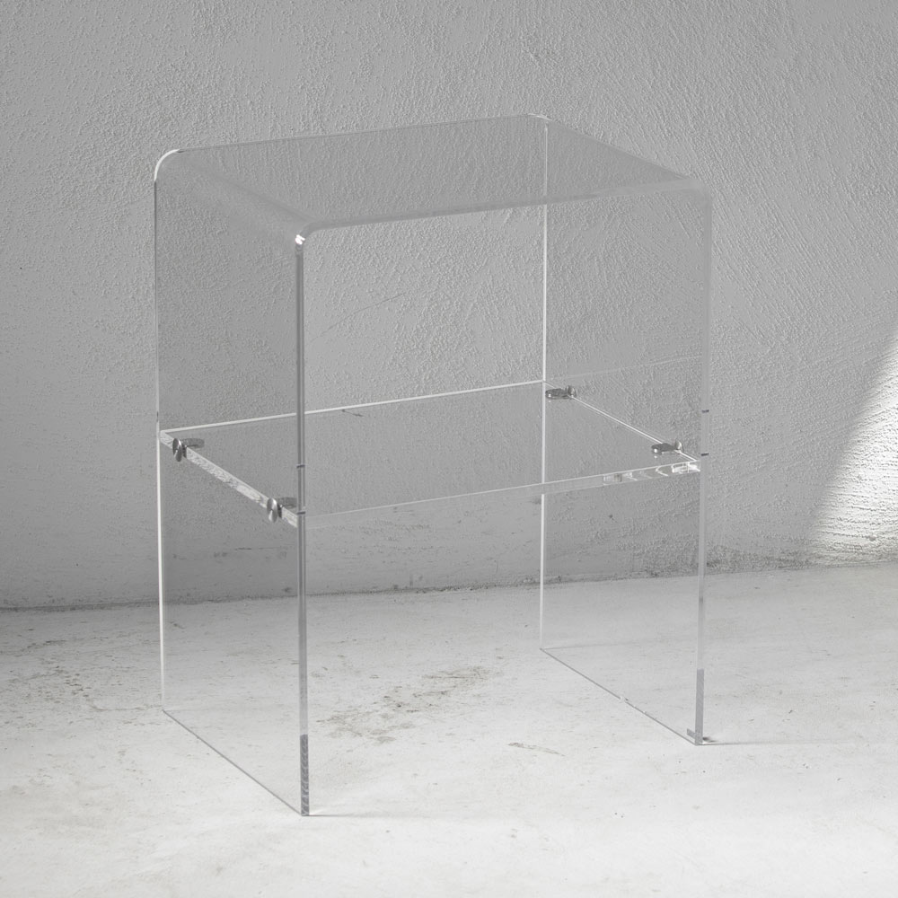Sängbord i transparent akrylkristall med hylla, tillverkat i Italien.