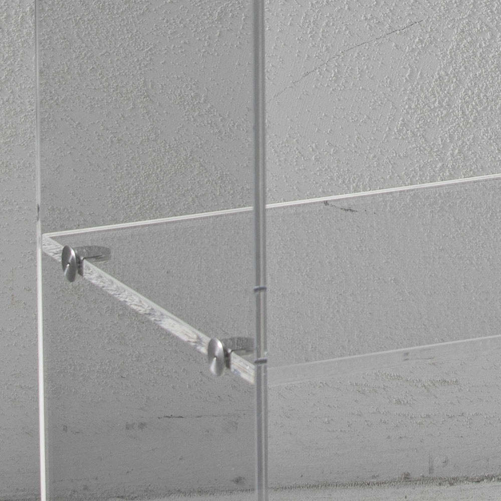 Den viktiga tjockleken på strukturen (8 mm) och på hyllan (10 mm) förstärker materialets briljans.