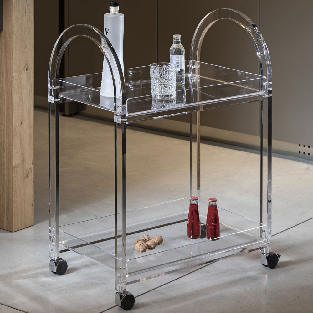 Transparent akrylvagn med tillverkade i Italien designhjul.