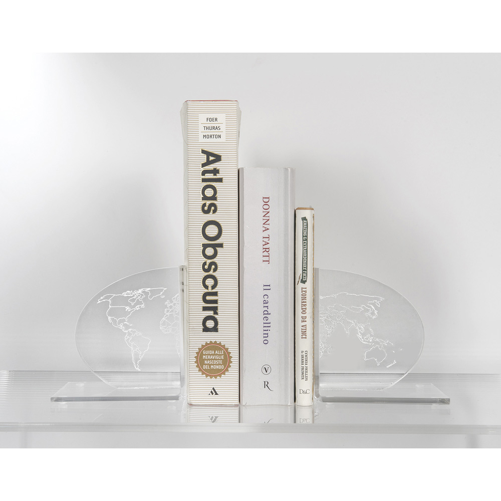Bokstöd i transparent plexiglas, kartdesign 2 delar tillverkade i Italien.