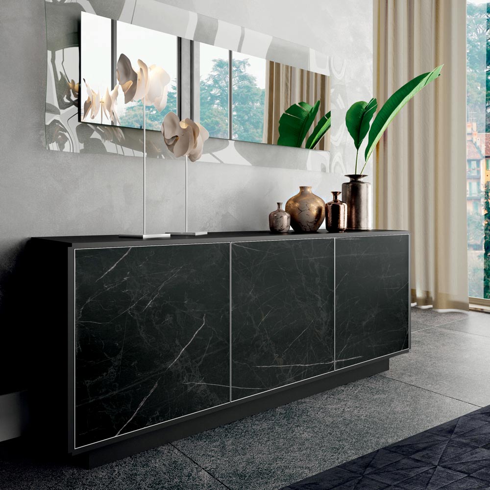 Skänk i lackat trä med marmoreffekt HPL laminatdörrar Tillverkad i Italien.