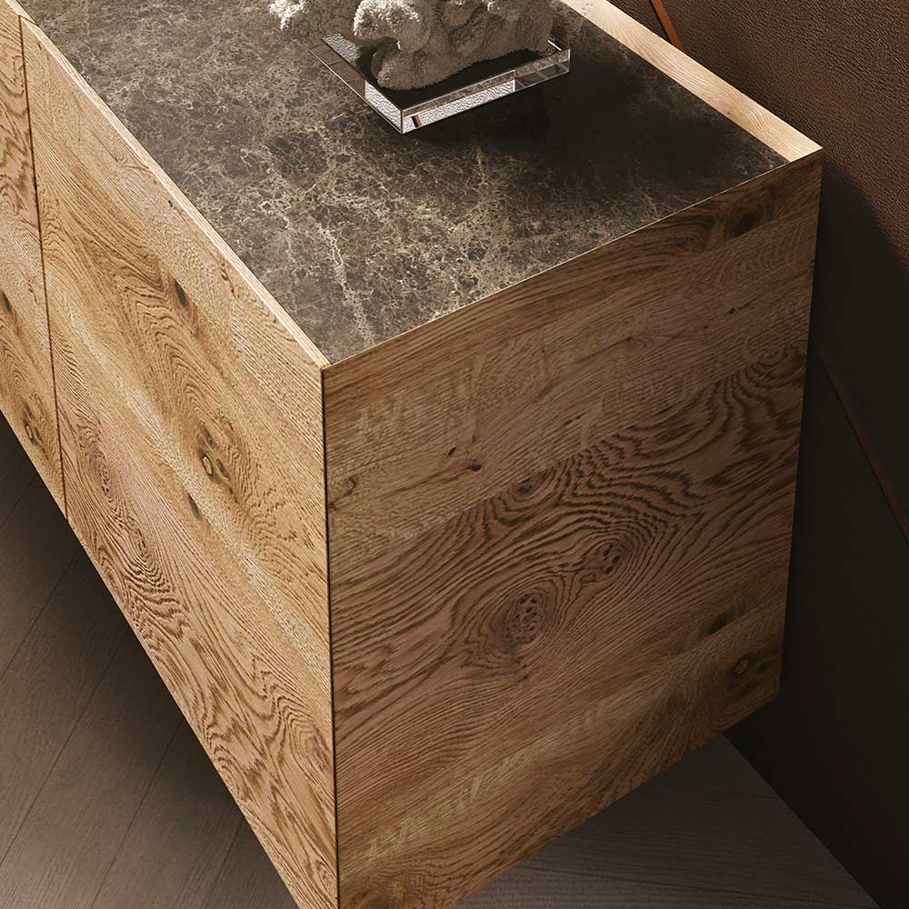 Modern skänk i trä och sockel i härdat glas Made in Italy.