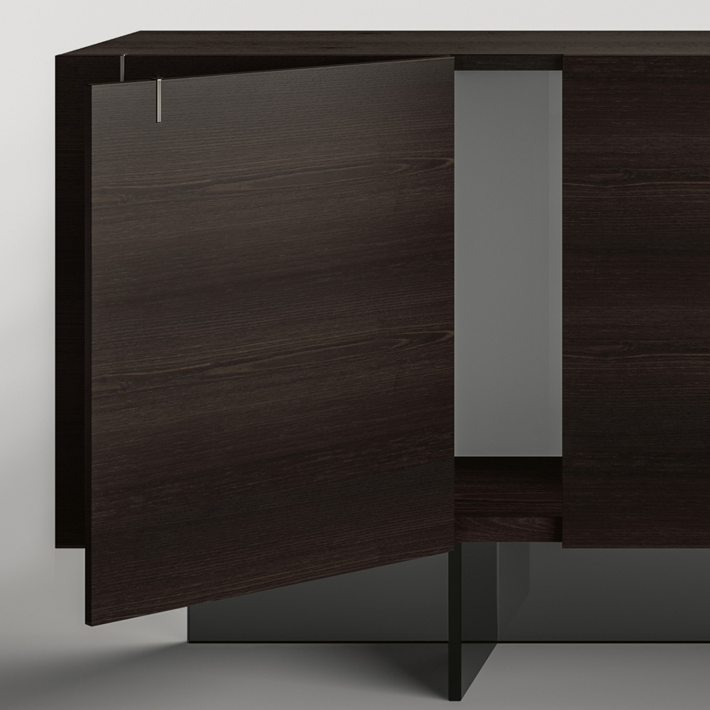 Vardagsrumsskänk med glas- och trästruktur tillverkad i Italien.