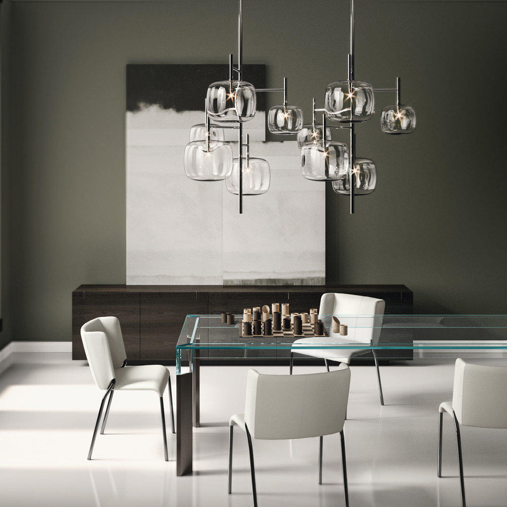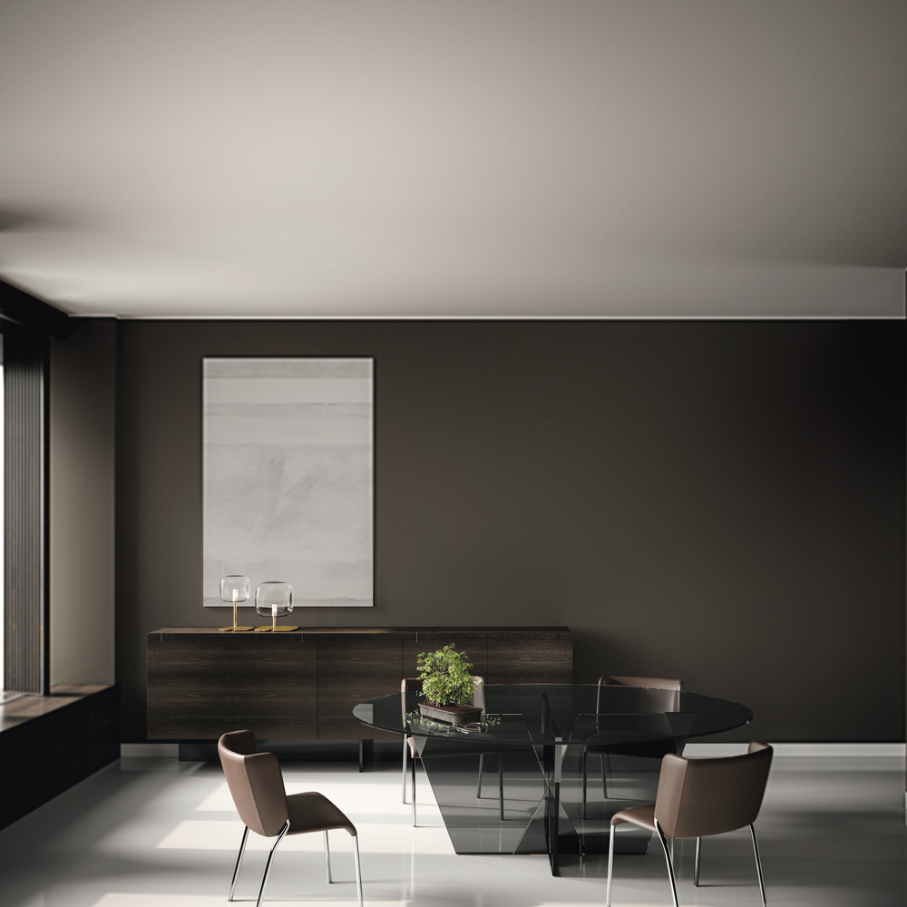 stark samtida estetik designad för olika användningsområden och olika delar av huset, anpassningsbart för ytskikt och storlekar efter din smak och behov. Den eleganta kombinationen av träets majestät och den raffinerade touchen av glas ger liv åt en