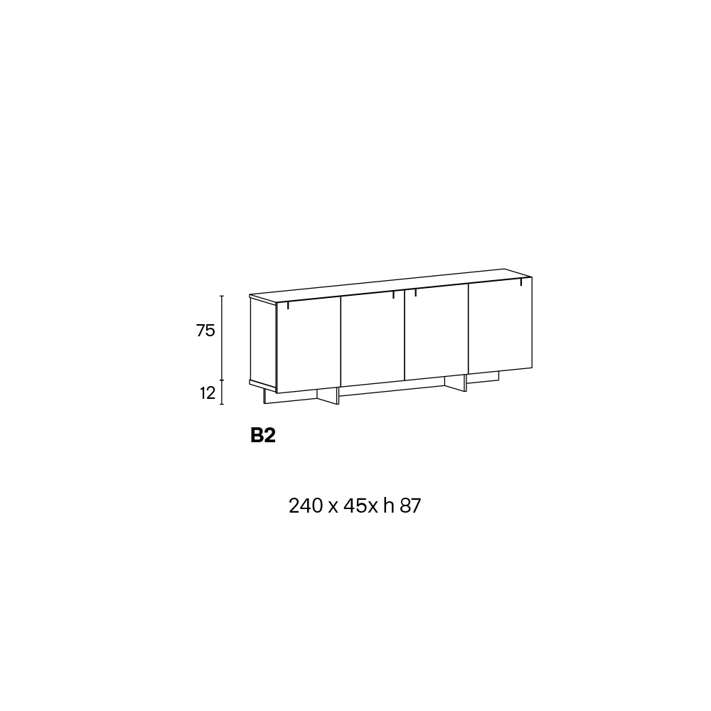 - L 240 x P 45 x H 85 cm (2 fack och 4 skjutdörrar som kan öppnas 180° på sig själva);