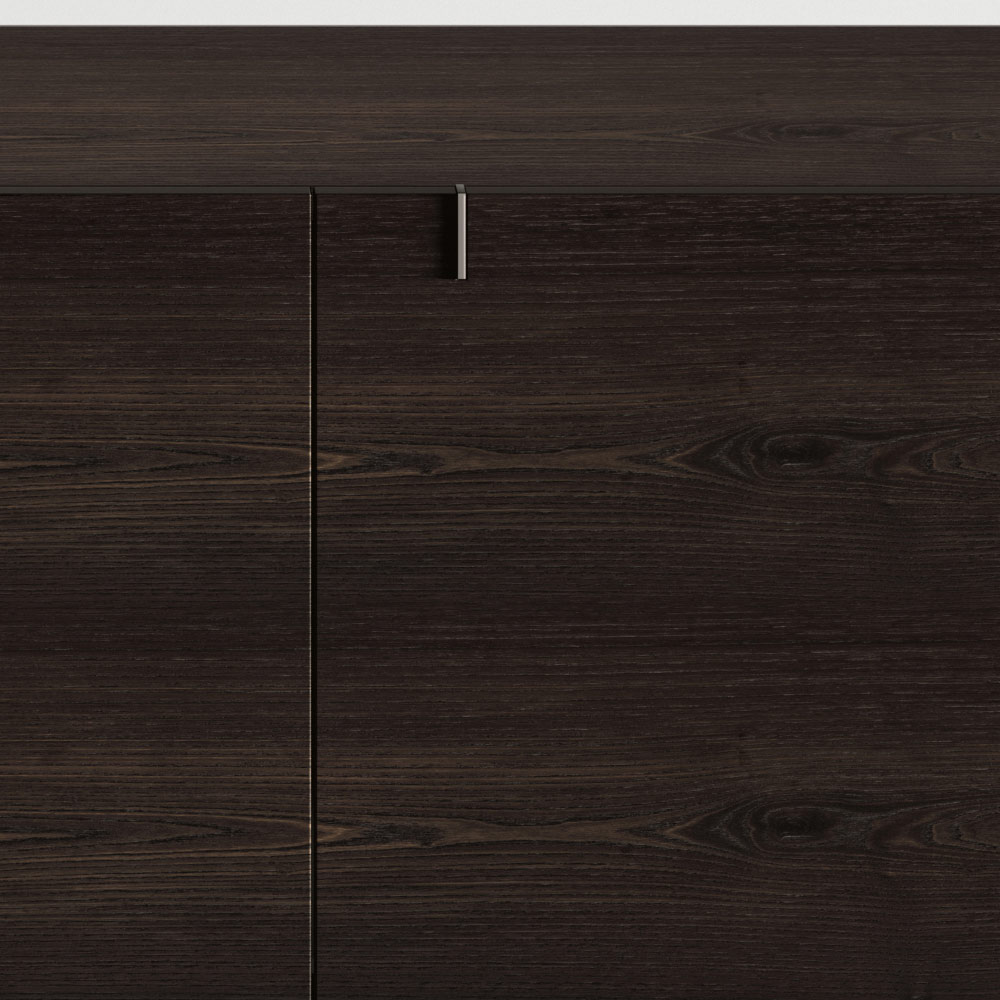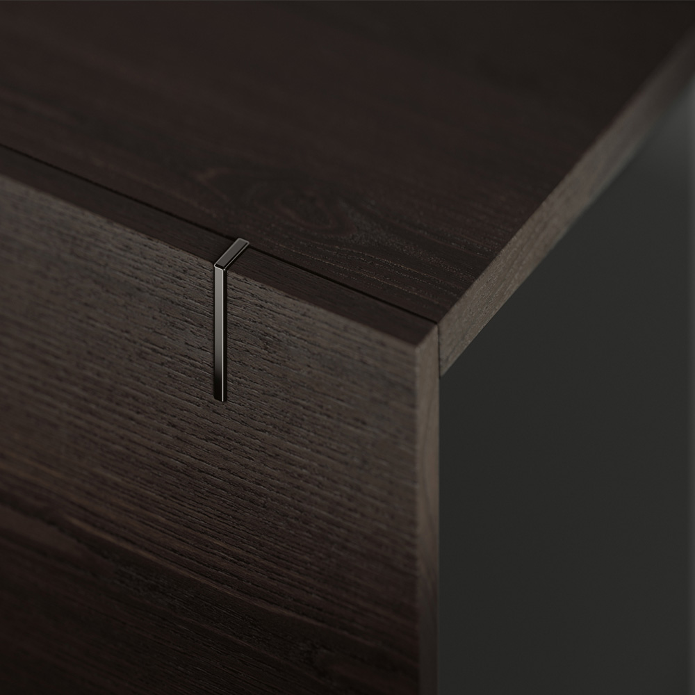 skjutdörrar som öppnas 180° på sig själva, utrustade med handtag i polerad gunmetallfinish som, förutom att fungera som en elegant designdetalj, integrerar det funktionella