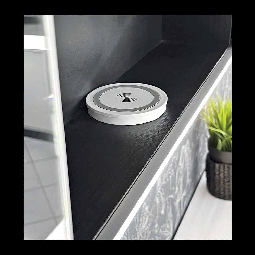 Den naturliga elegansen hos trästrukturen smälter harmoniskt in med alla typer av möbler, från de mest traditionella till de moderna, vilket gör detta skåp till ett mångsidigt tillskott i alla miljöer. Med sitt trendiga och praktiska utseende är det det perfekta valet för dem som vill kombinera värmen från trä med innovationen inom LED-teknik.