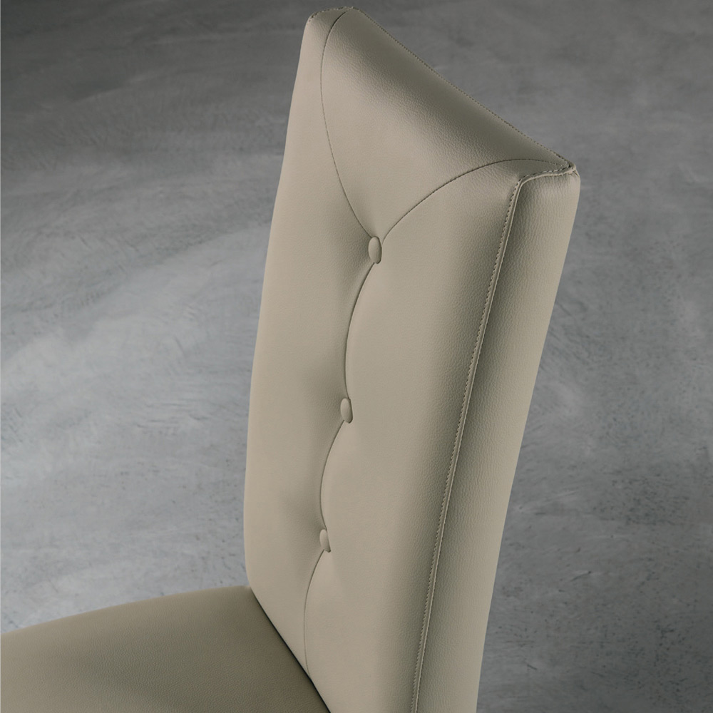 Vardagsrumsstol i trä och ekoläder med knappar tillverkad i Italien.