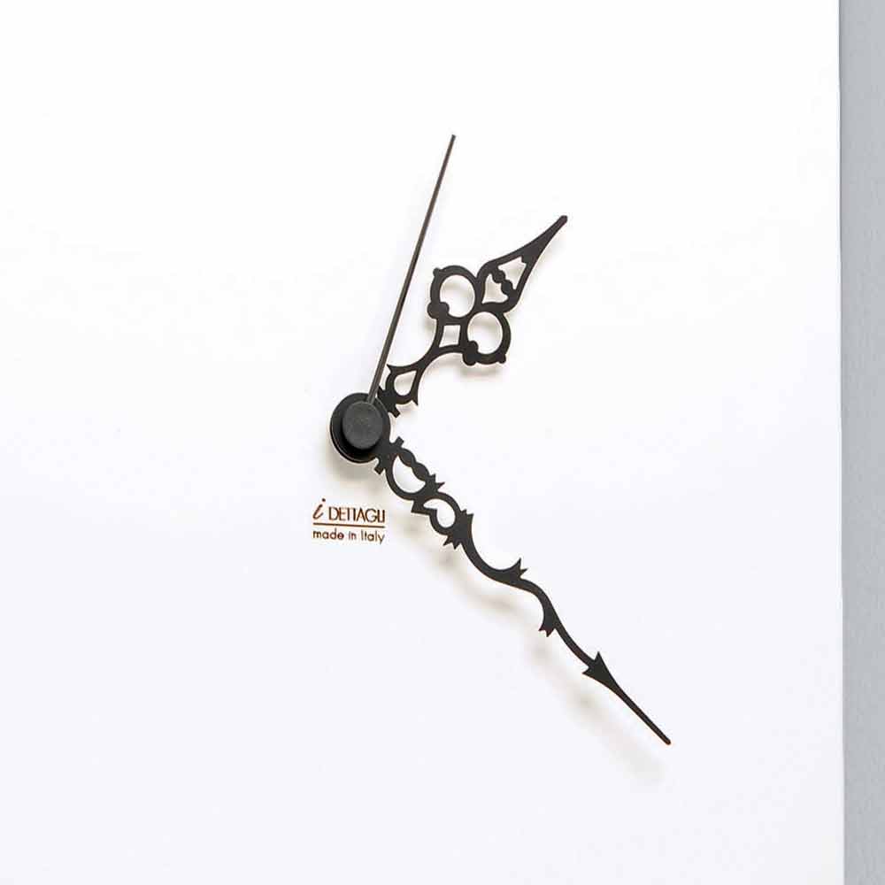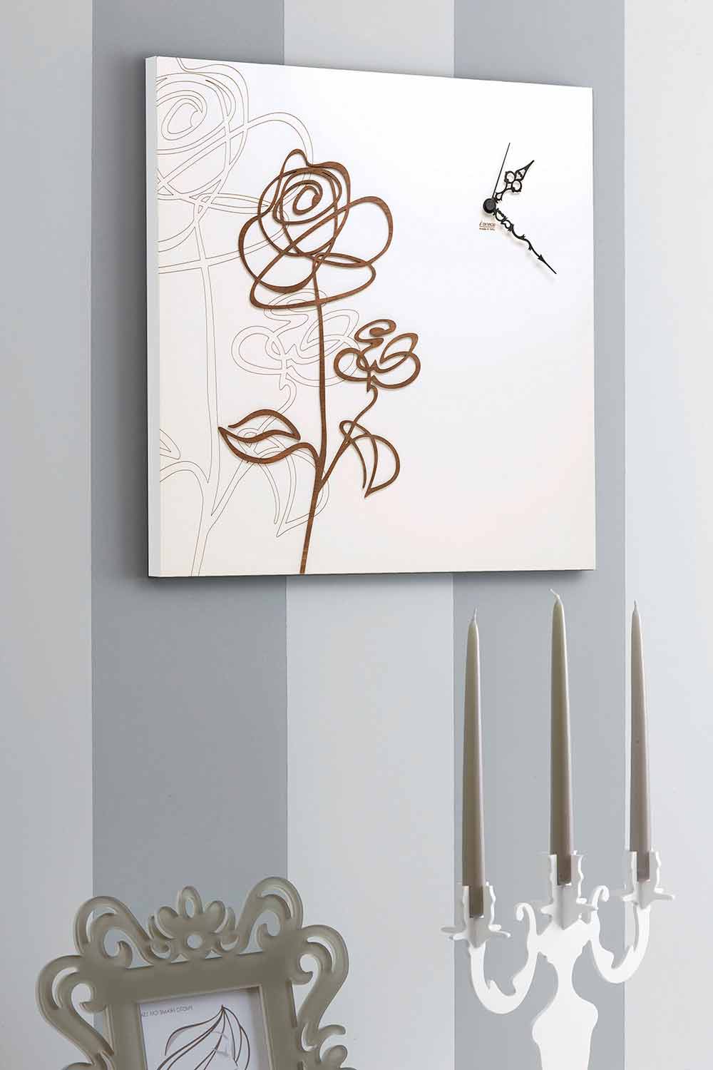 Fyrkantig väggklocka i vitt trä med blommig dekoration i mörkt trä, modern design gjord i Italien.