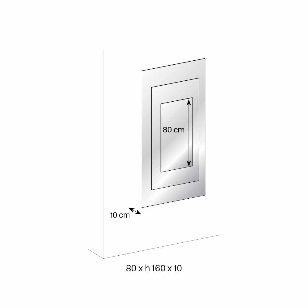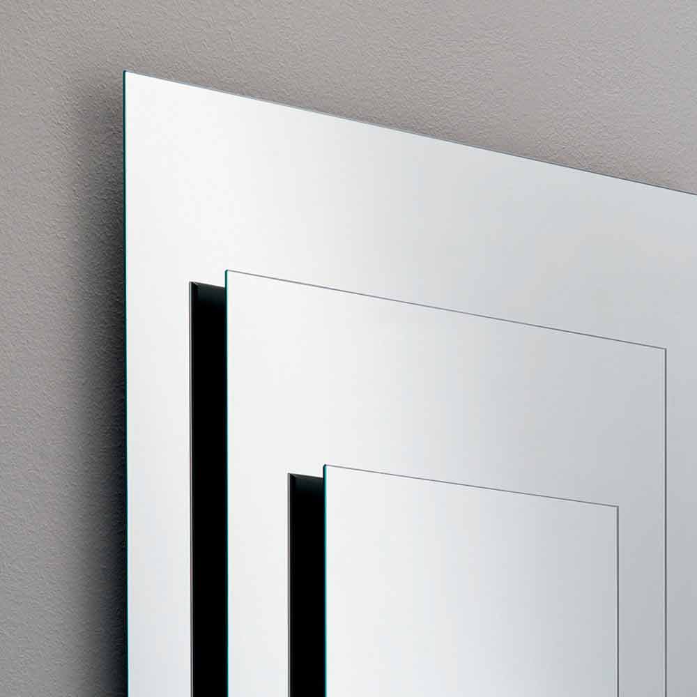 Denna väggspegel består av tre överlappande och åtskilda plattor som stöds av en svart träkonstruktion .