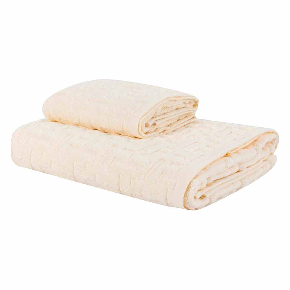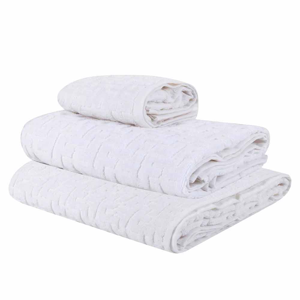 Handdukservice i bomullsfrotté med präglad design tillverkad i Italien, handduk, ansikte och gäst.