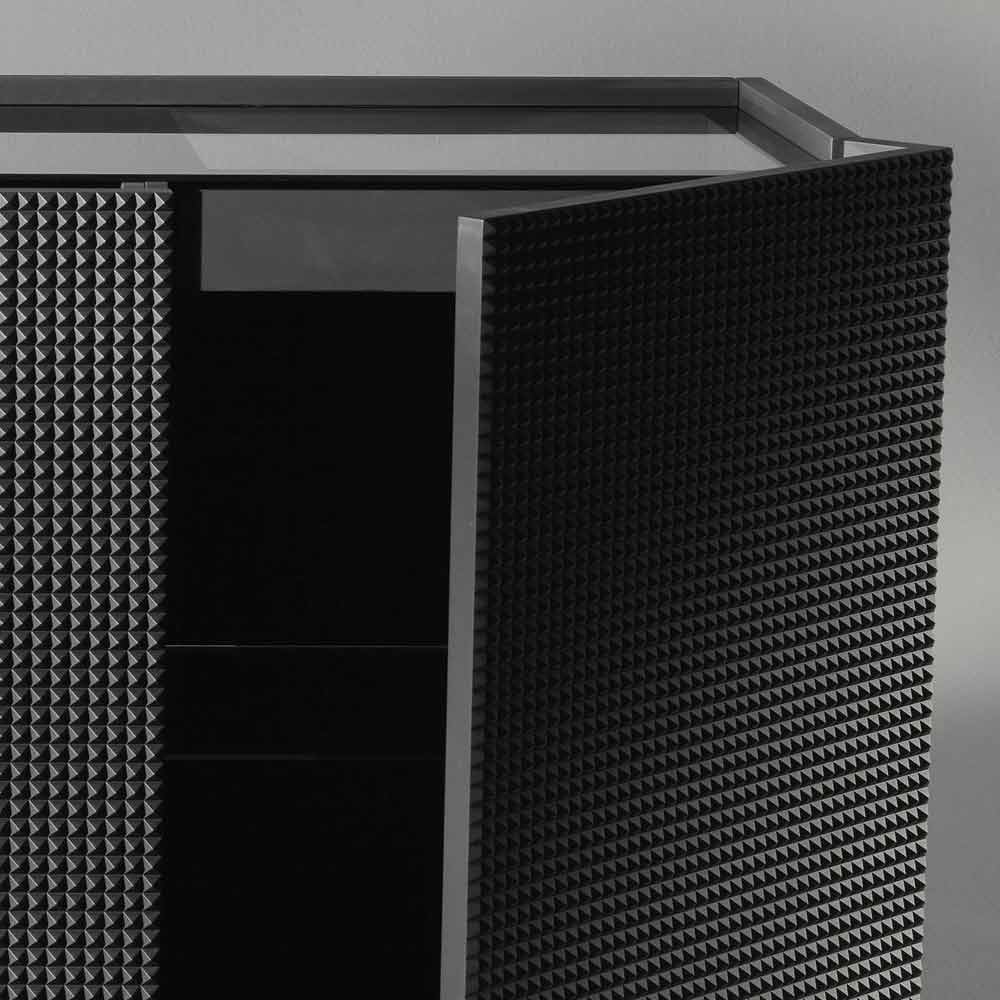 Tron modern design svart med 2 dörrar och utdragbar låda Flora, tillverkad i Italien