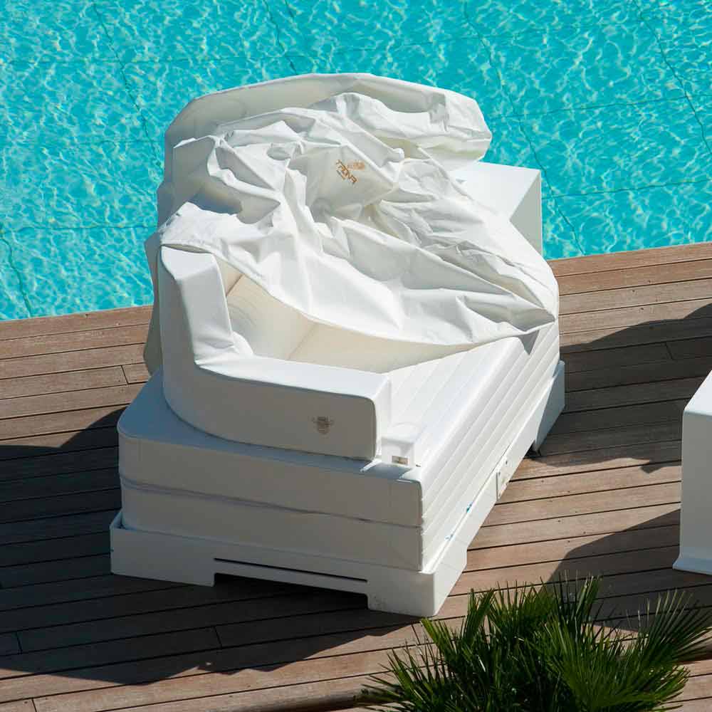 - Det fungerar som en elegant inredning ur vattnet, i själva verket, tack vare sin ursprungliga bas i plexiglas, omvandlar den till en lyxig solstol.
