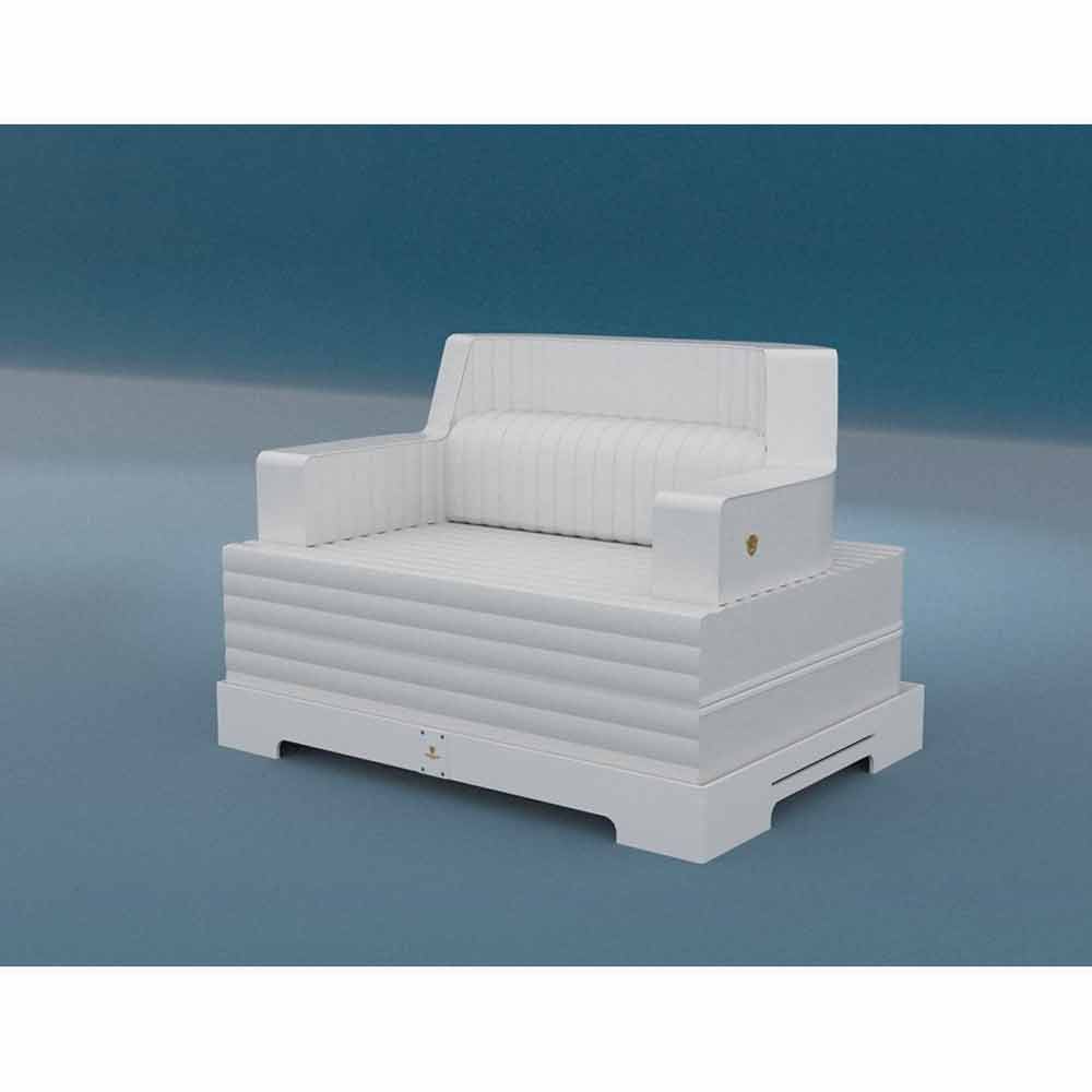 Trona Magnum Lyx görs Ecopelle miljövänligt Båtliv behandlas för utanför i vit finish, certifierad, vattenavvisande och flamskyddade och EPS, komplett med en dubbelsätes, ryggstöd, ryggstöd, nackstöd, berikas av två dryckeshållare, en funktionell över natten lock och en bas .