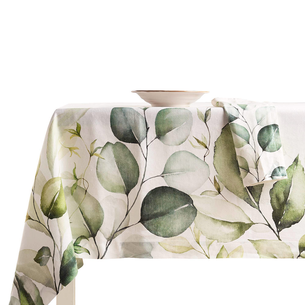 Denna tryckta och plaggtvättade rena linneduk är idealisk för att lägga till en touch av natur och förfining till ditt bord. Med ett grönt lövmönster tar den här duken naturens elegans direkt in i din matsal och skapar en varm och välkomnande atmosfär som inbjuder till delade stunder vid bordet.